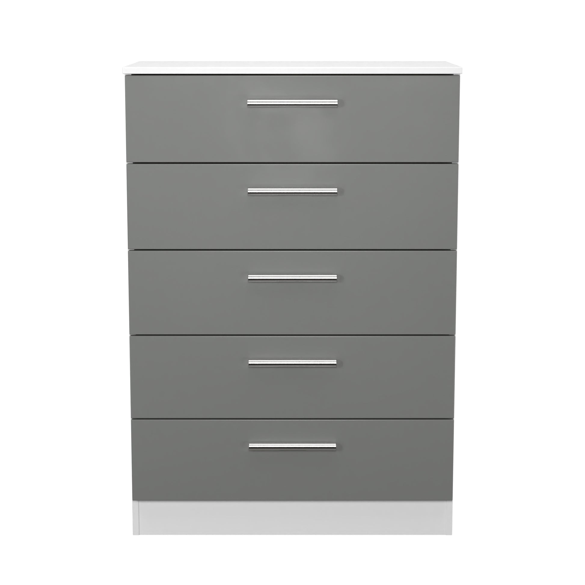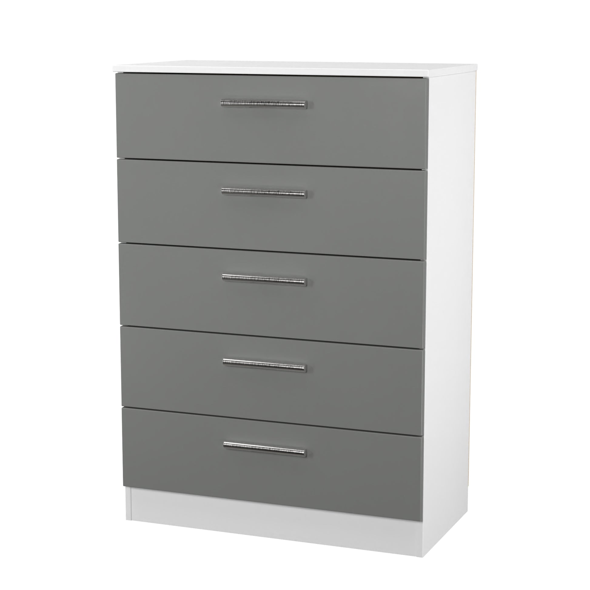 Contrast Tall Chest of Drawers Grey & White 5 Drawers 108cm