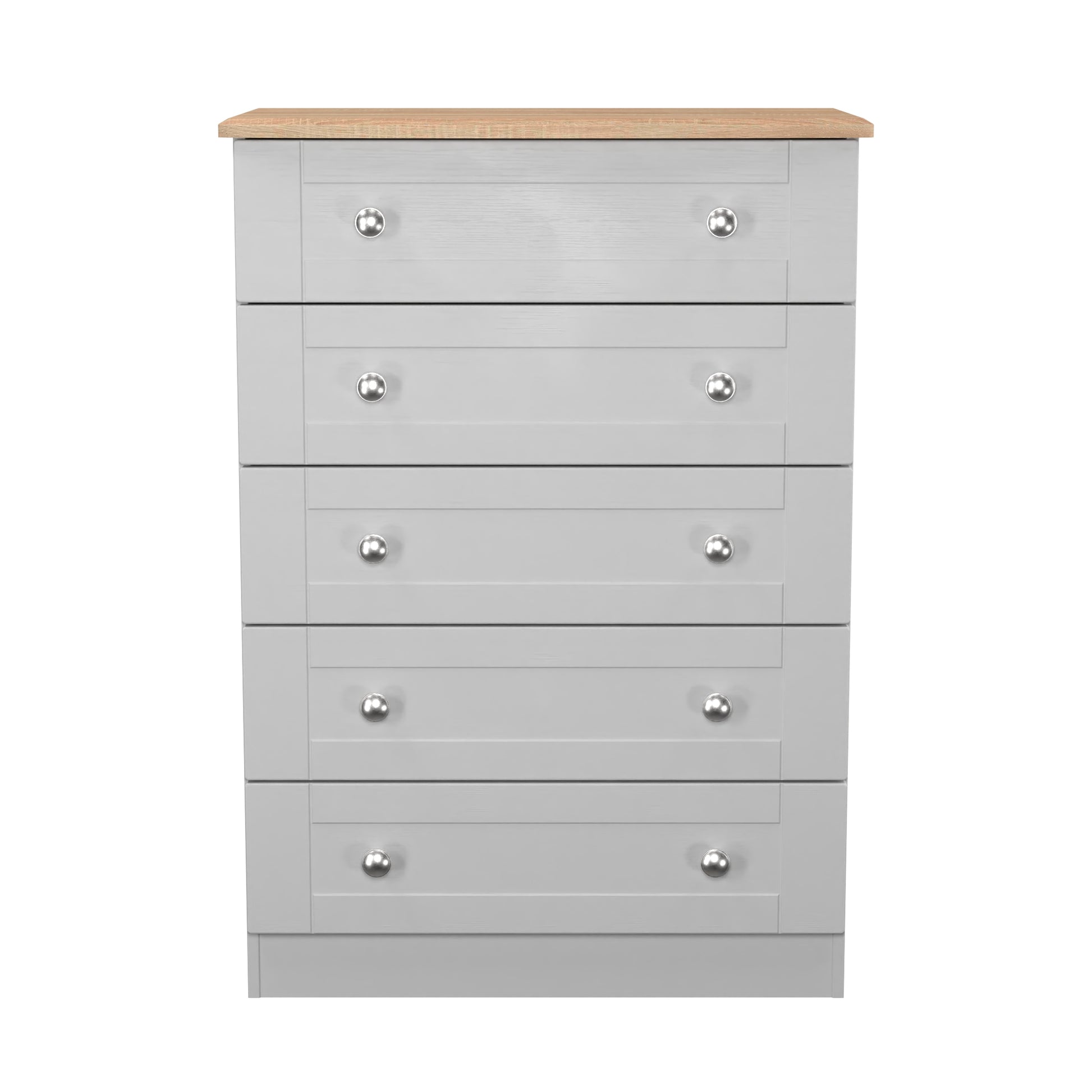 Sussex Tall Chest of Drawers Grey & Light Oak 5 Drawers 77cm