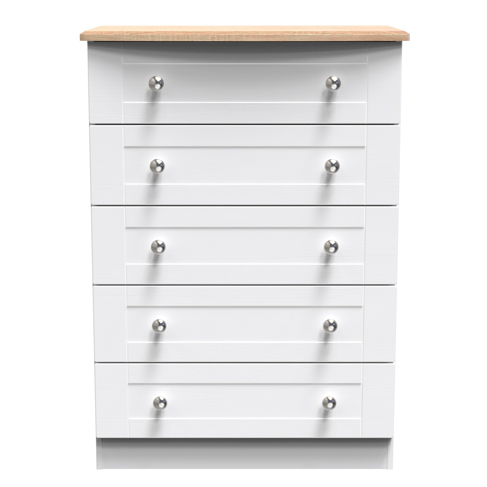 Sussex Tall Chest of Drawers White & Light Oak 5 Drawers 77cm