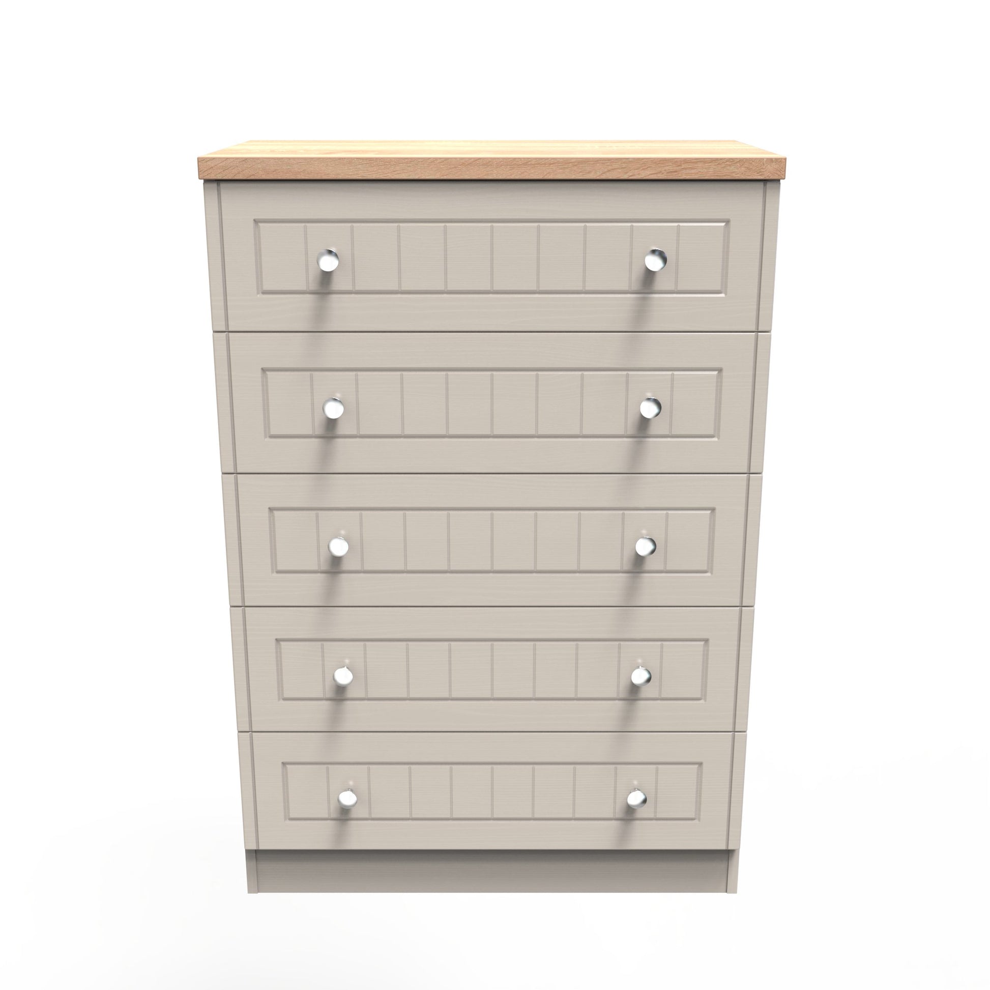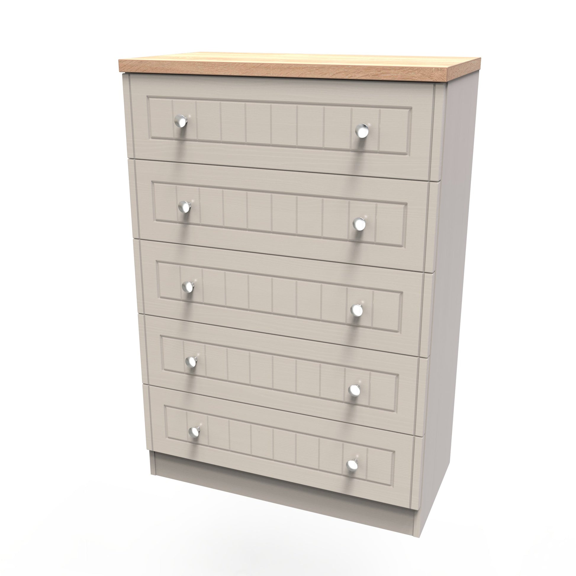 Vienna Tall Chest of Drawers Off-white & Light Oak 5 Drawers 74cm