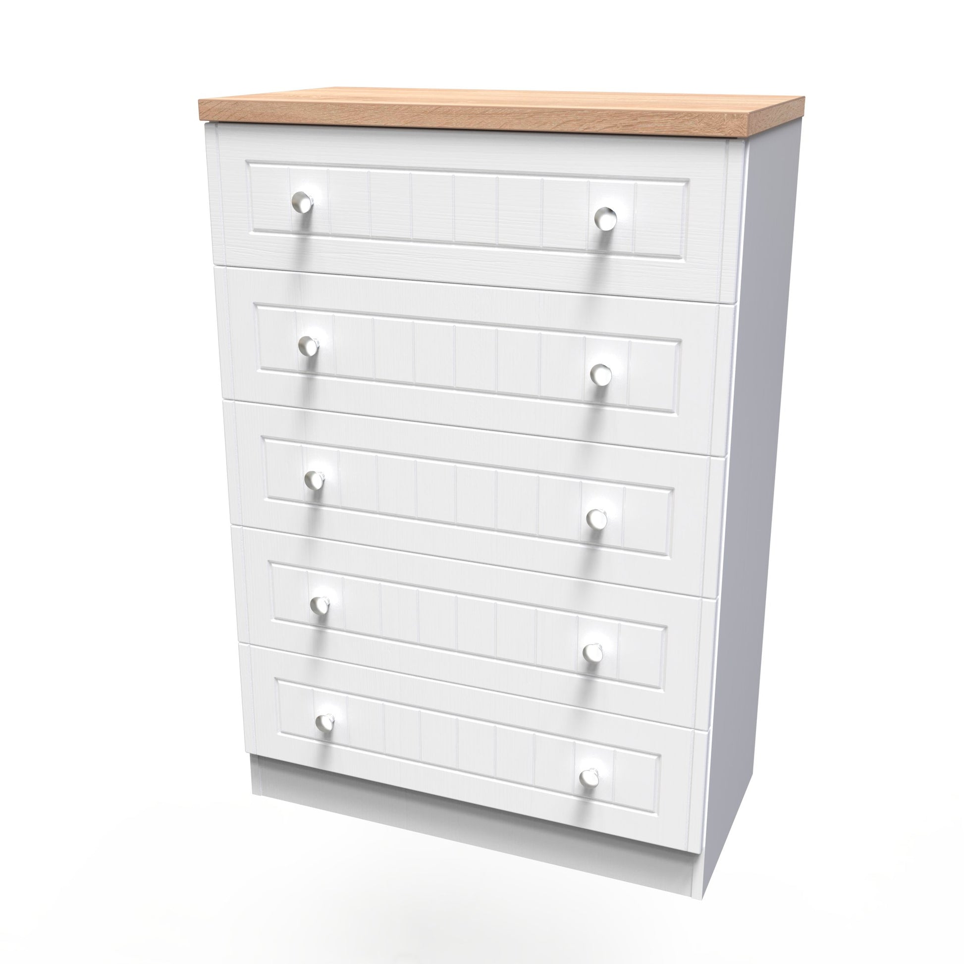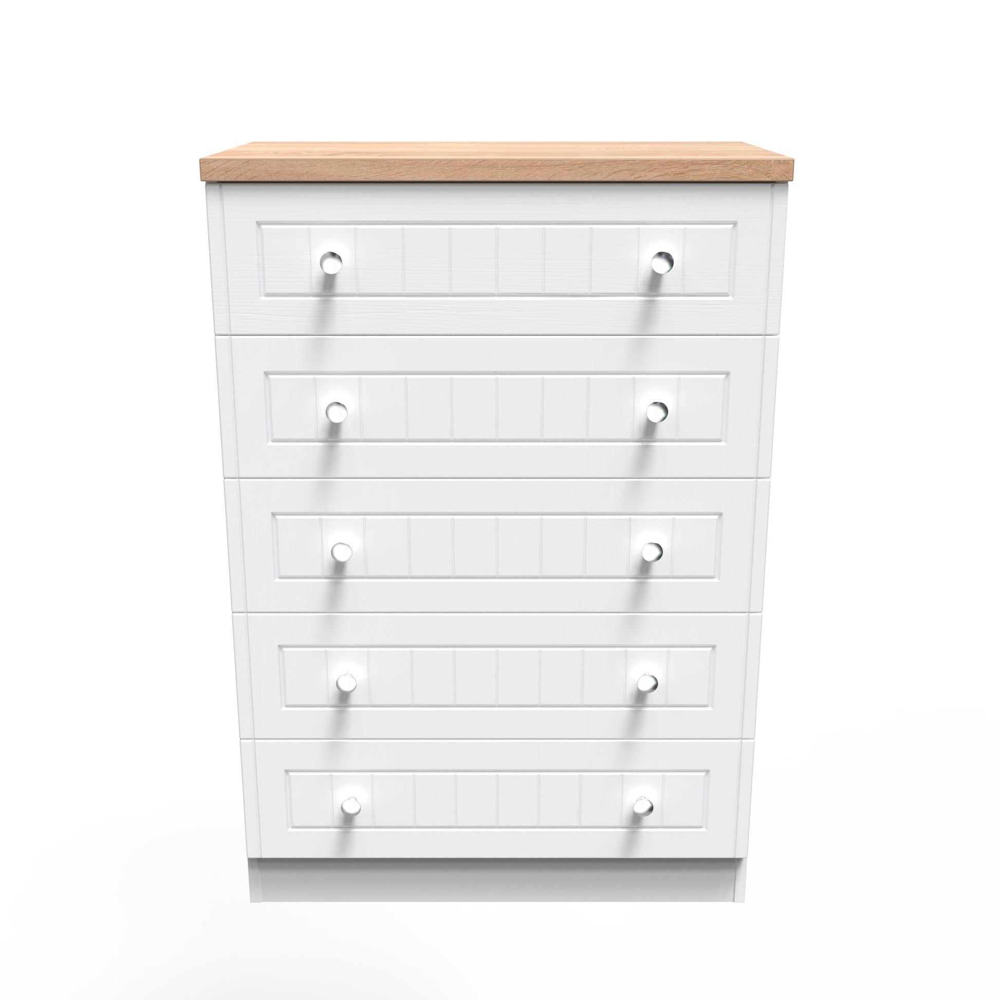 Vienna Tall Chest of Drawers White & Light Oak 5 Drawers 74cm