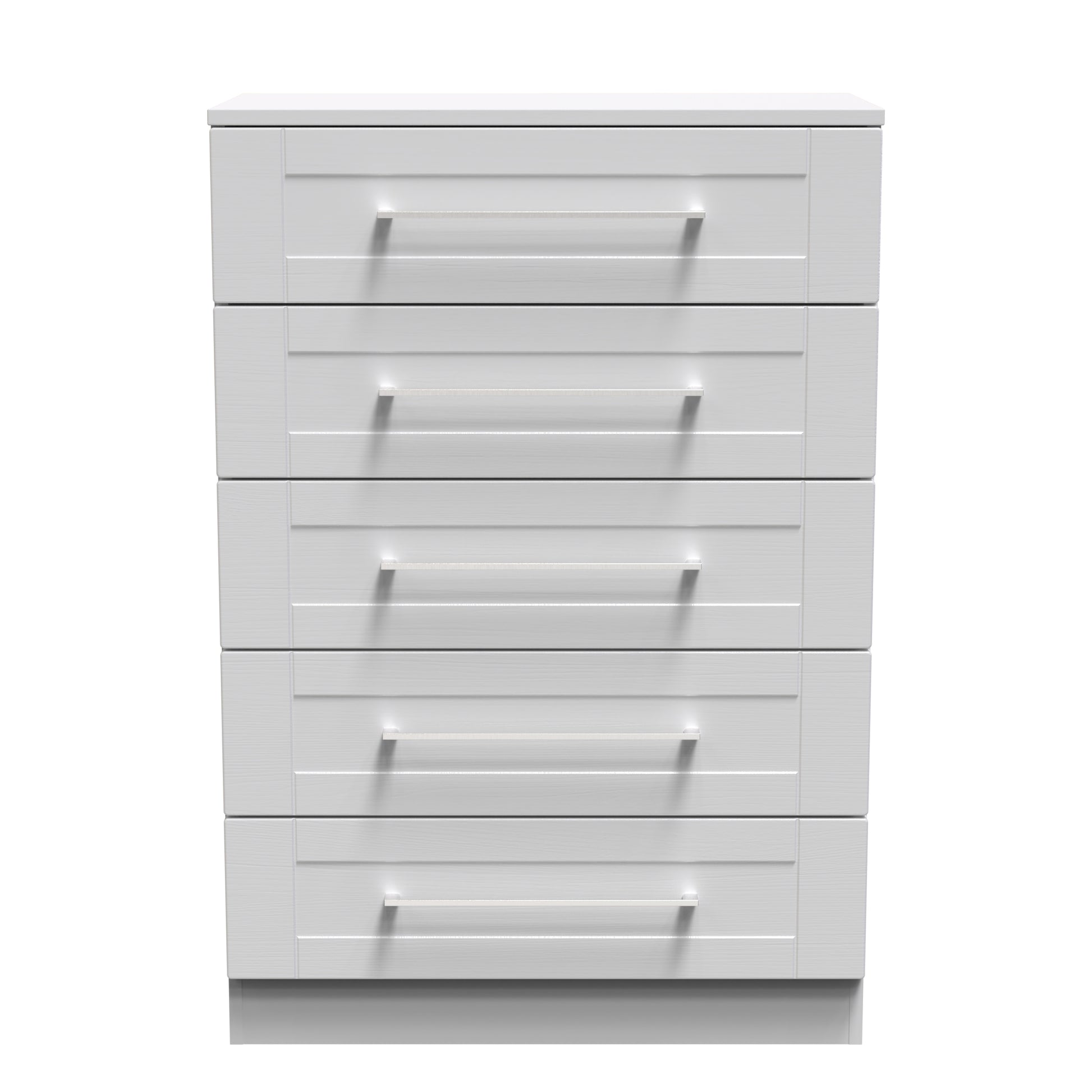 York Tall Chest of Drawers Grey 5 Drawers 74cm
