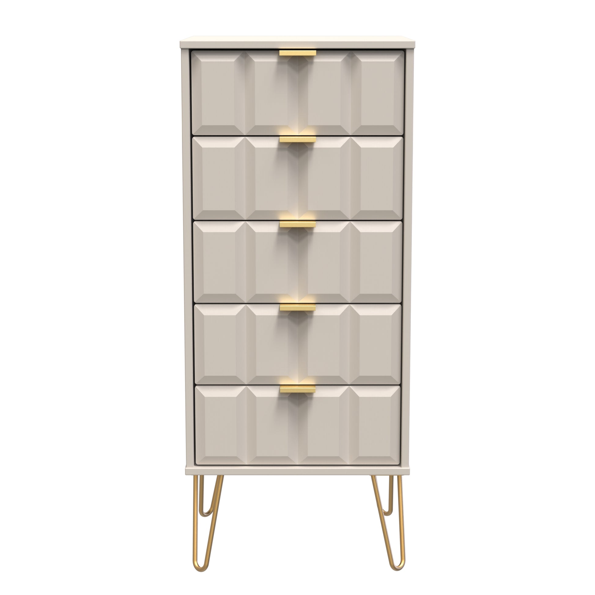 Cube Tall Tallboy Off-White 5 Drawers 109cm