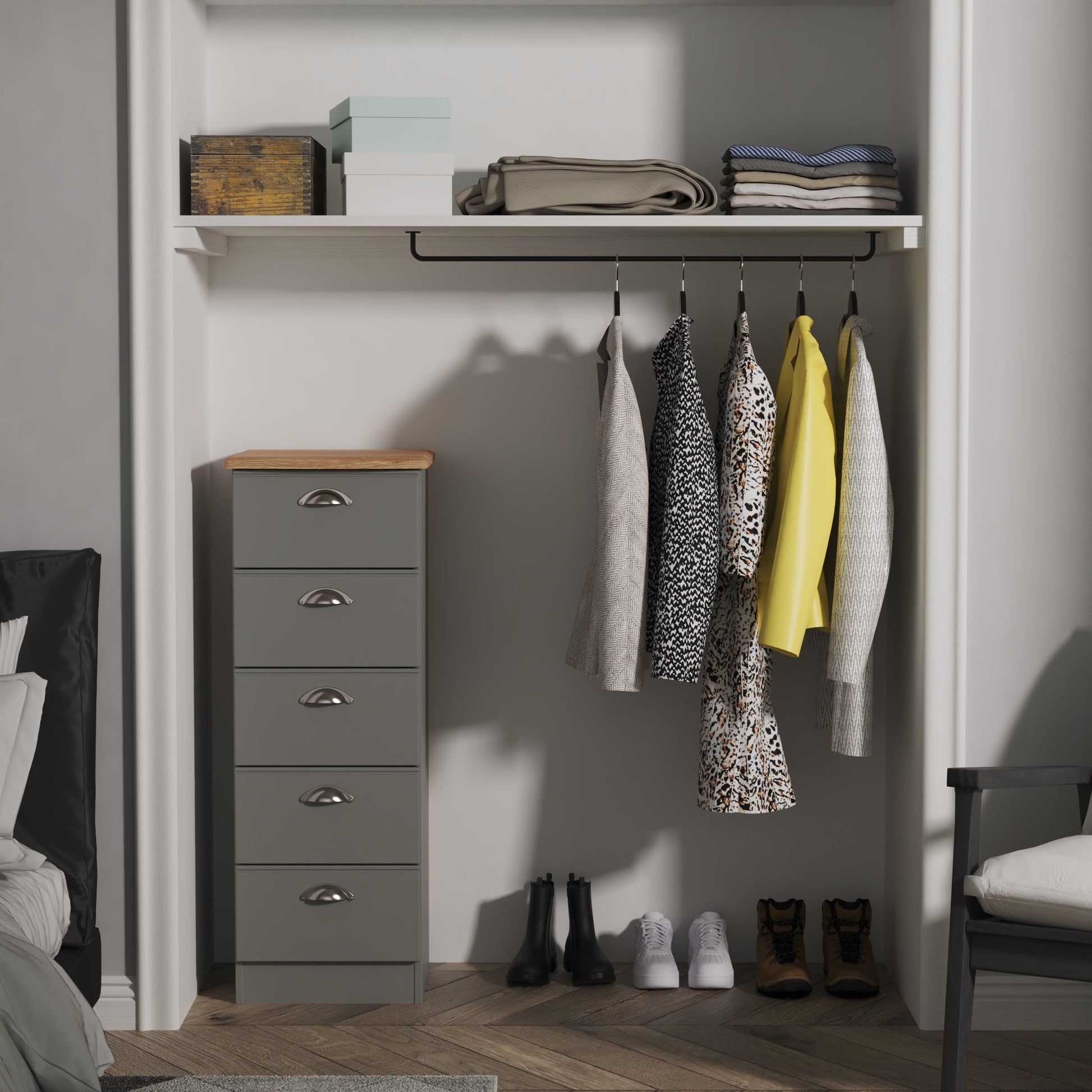 This tallboy from Swift offers great value along with first-rate quality and is ideal for those who are seeking a home enhancement that everyone will find appealing. The vertical design means you'll have plenty of storage space., this piece will provide an outstanding enhancement to your sleeping area. With a stylish grey & light oak colour scheme that will look sleek and sophisticated.