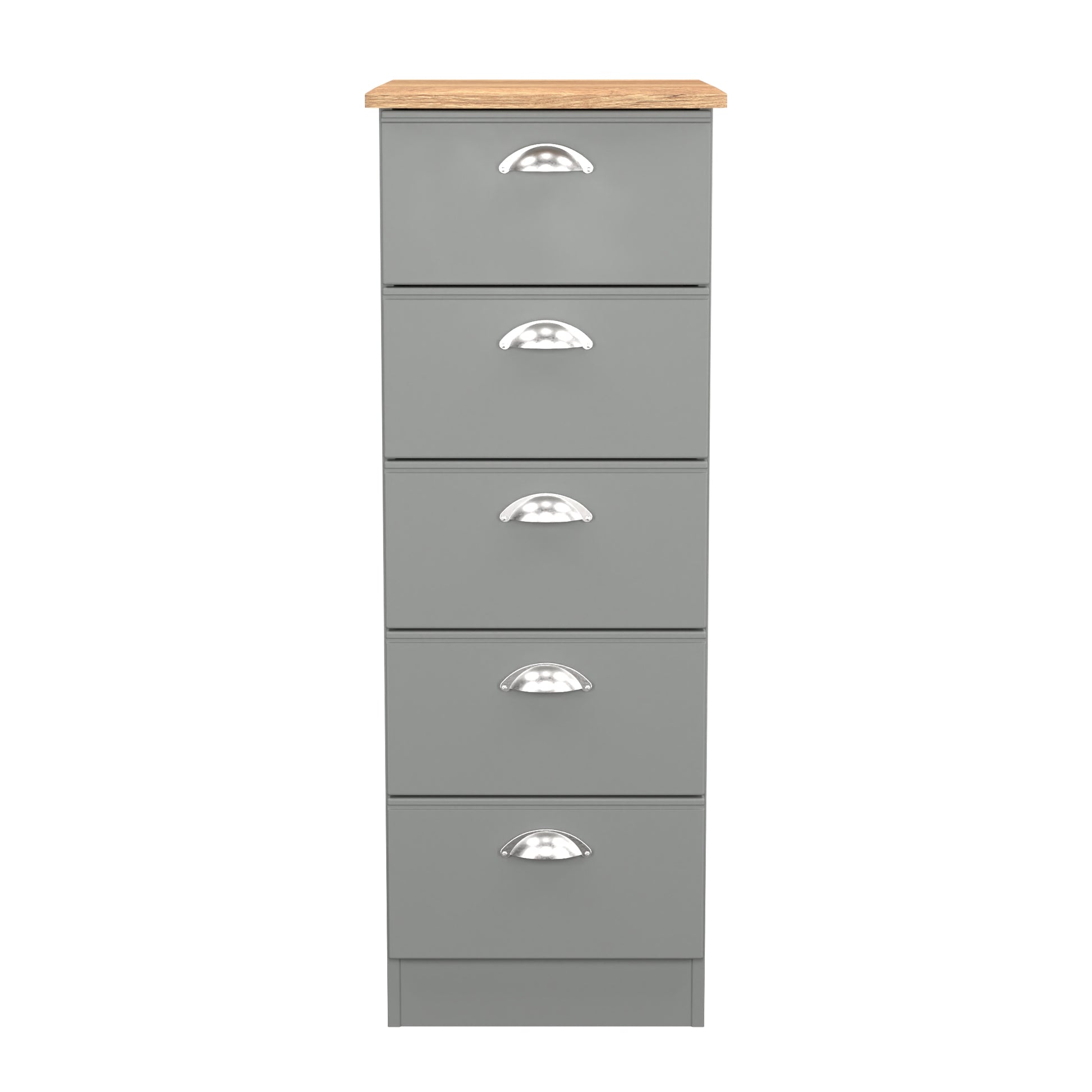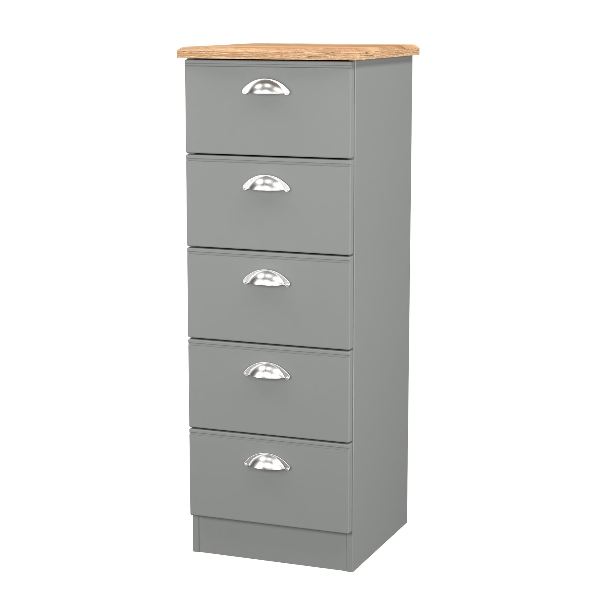 Victoria Tall Tallboy Grey & Light Oak 5 Drawers 40cm