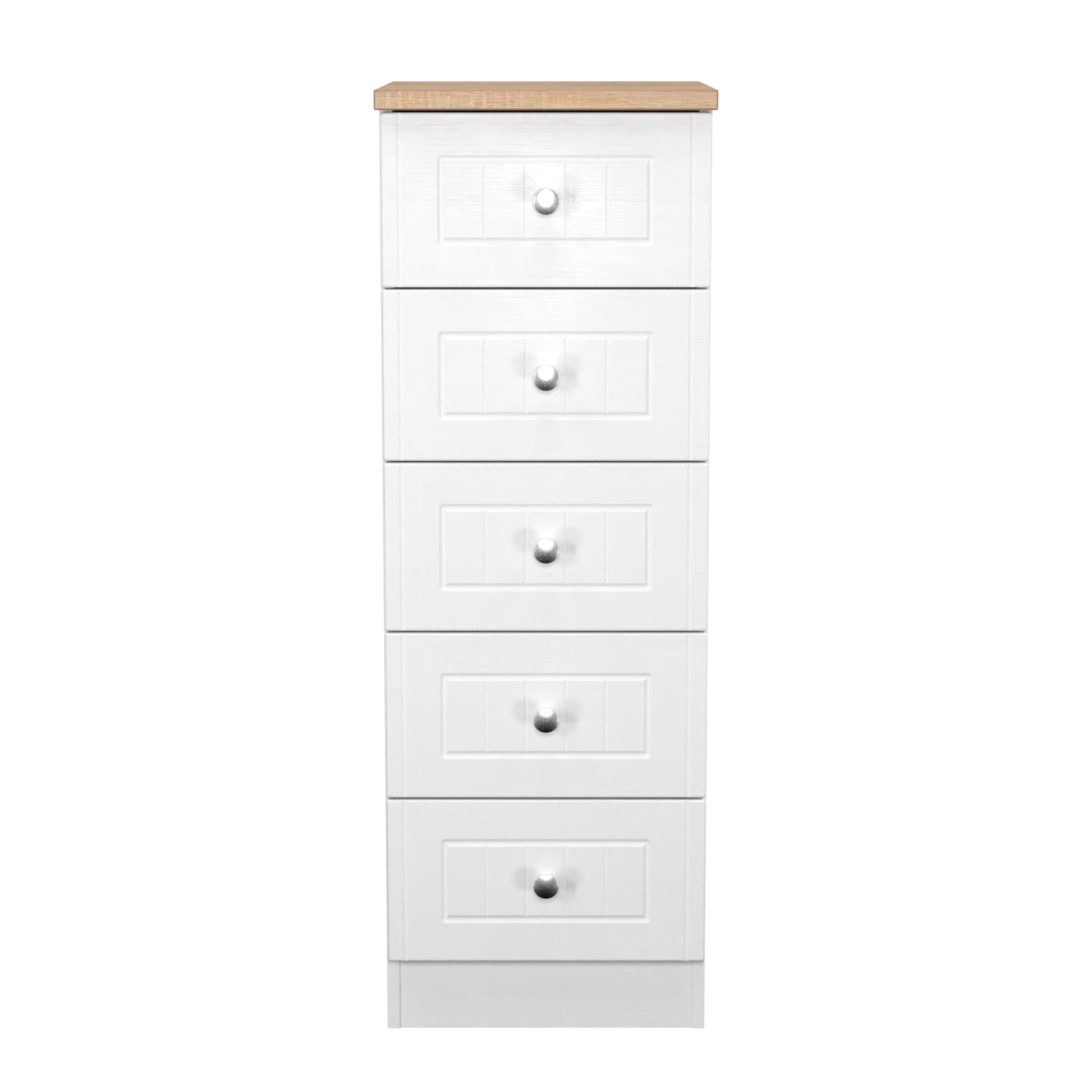 Vienna Tall Tallboy White & Light Oak 5 Drawers 37cm