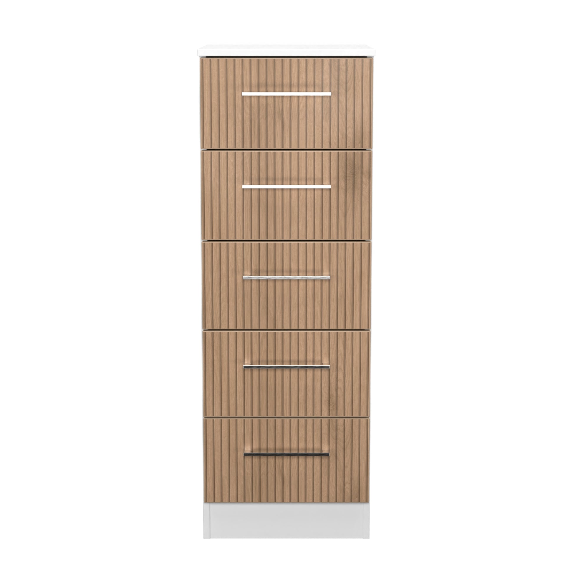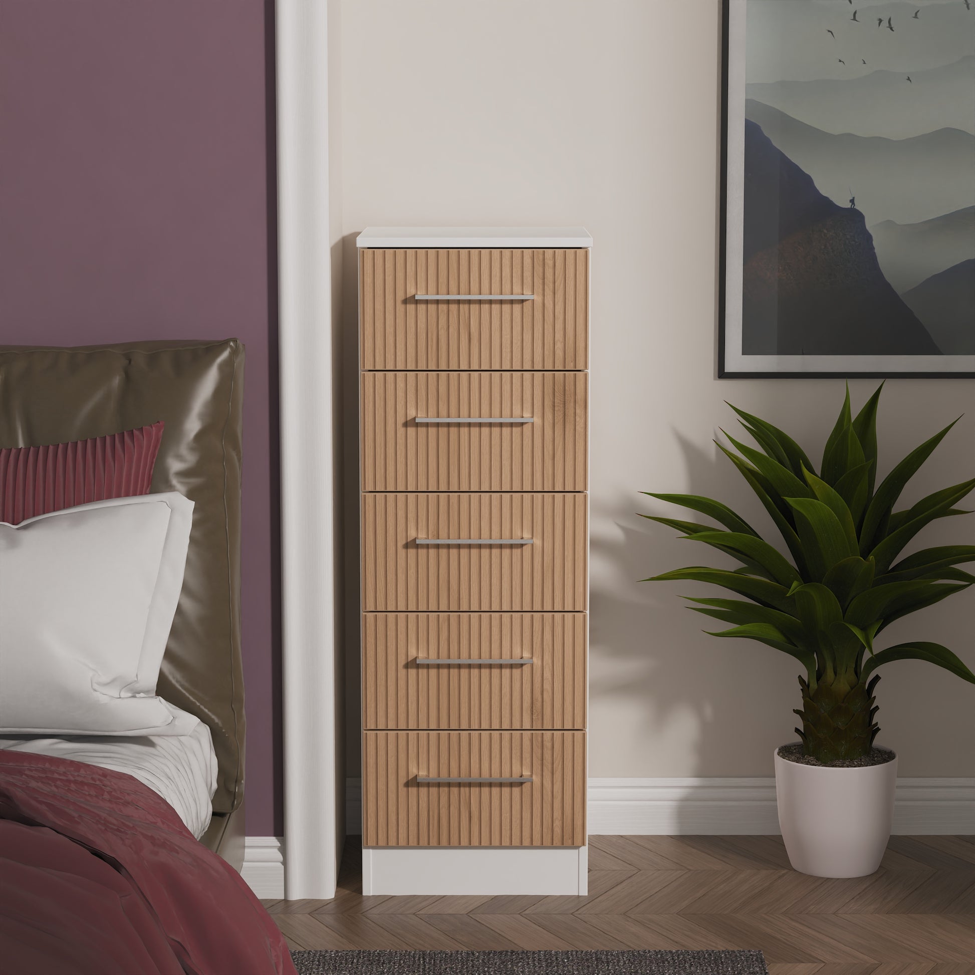 Worcester Tall Tallboy White & Light Oak 5 Drawers 37cm