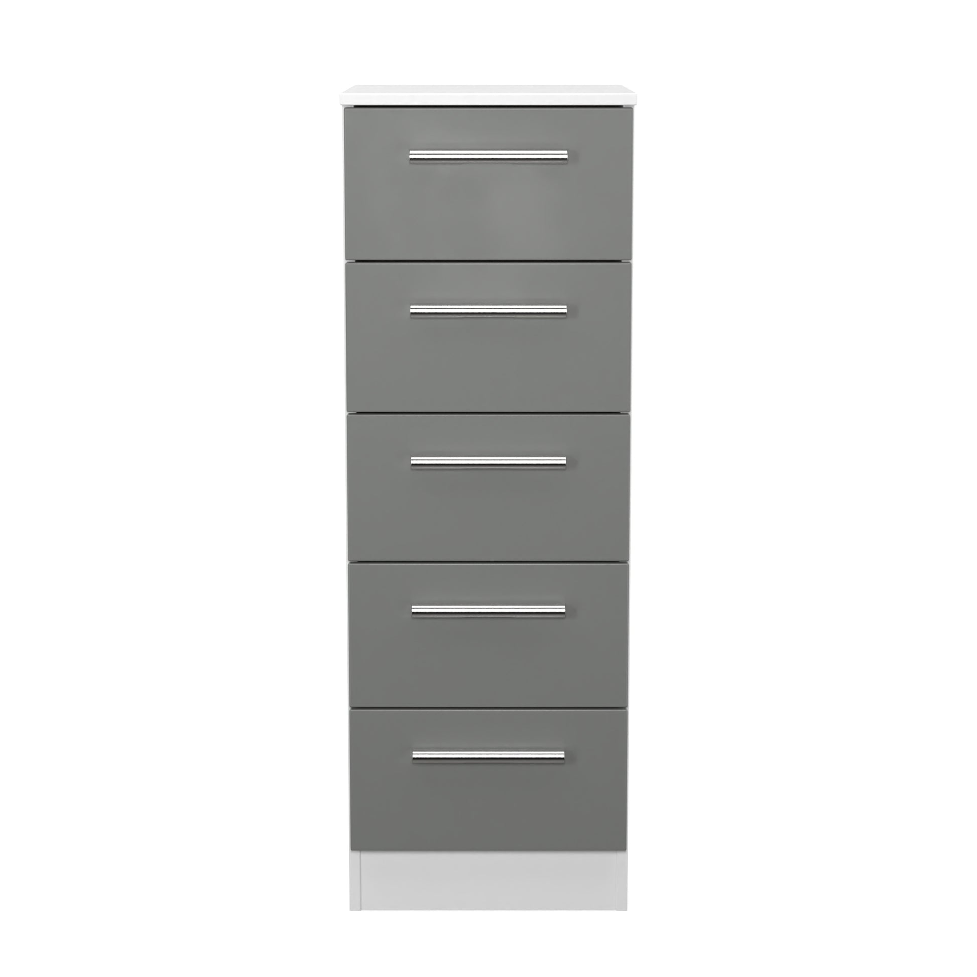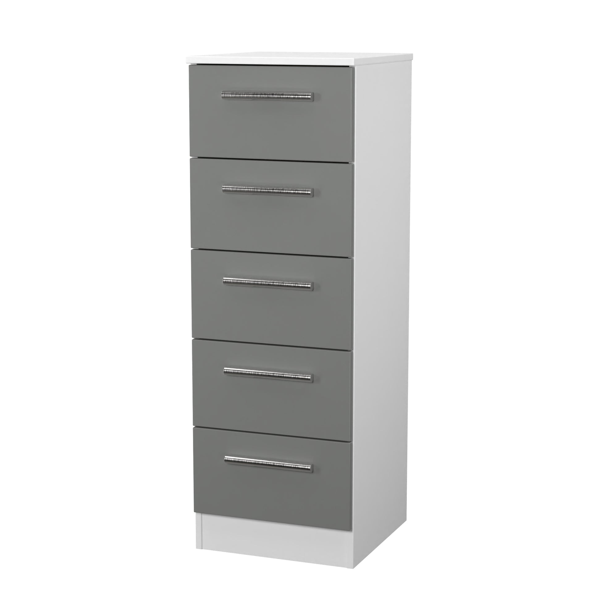Contrast Tall Tallboy Grey & White 5 Drawers 108cm