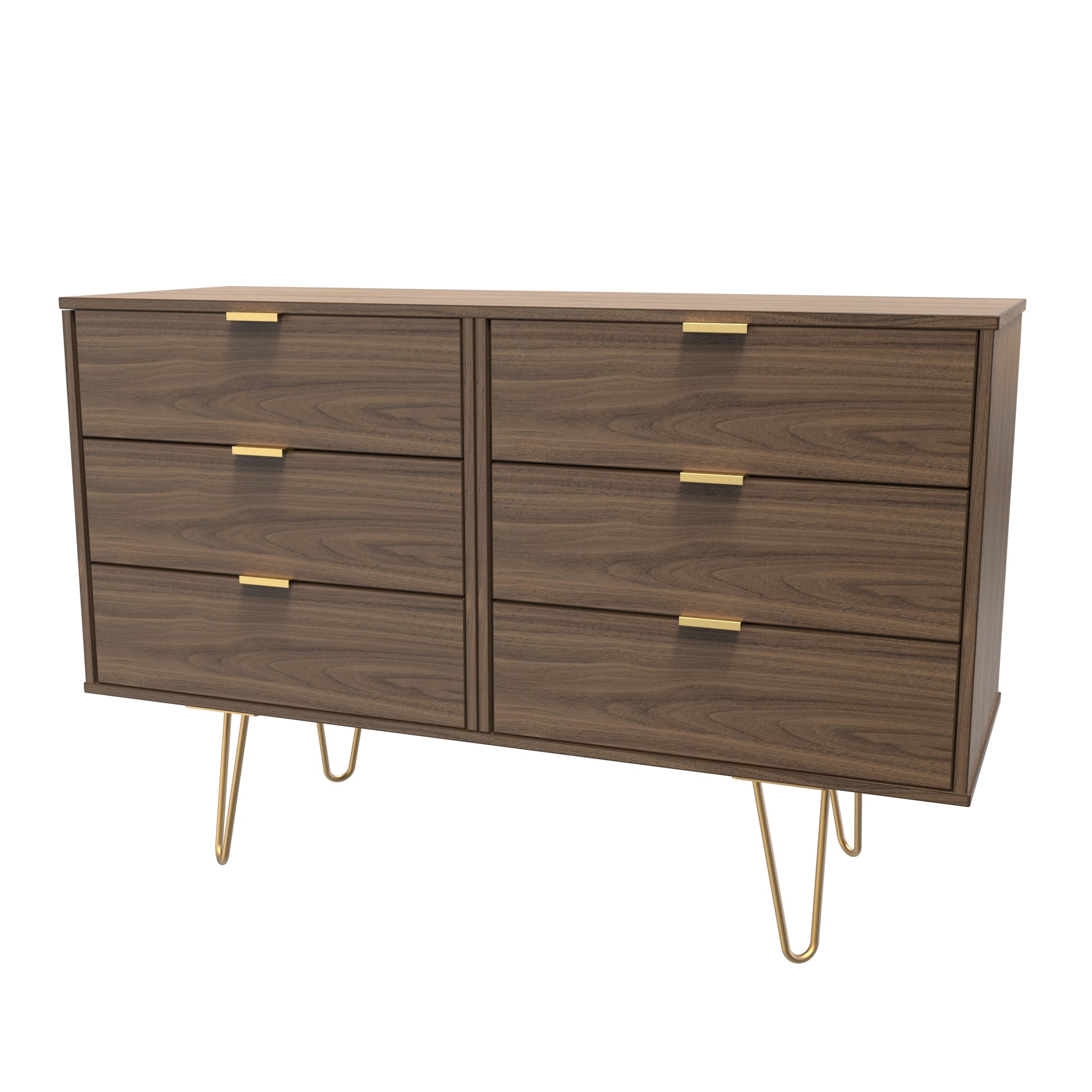 This double width 6 drawer chest of drawers is practical and stylish. Perfect for any home as a free standing storage unit. Modern and stylish, this striking range is available in a range of durable scratch resistant colour or natural wood finishes. With pull handles on all doors and drawers, with gold hairpin metal legs. Comes with Soft Close Drawers. All our furniture is made to order in the United Kingdom, to the highest quality. It is delivered within 10 working days direct to your location of choice by one of our two man delivery teams, and comes fully assembled (although legs may be removed to prevent damage in transit). Part of the Hong Kong F Collection.
