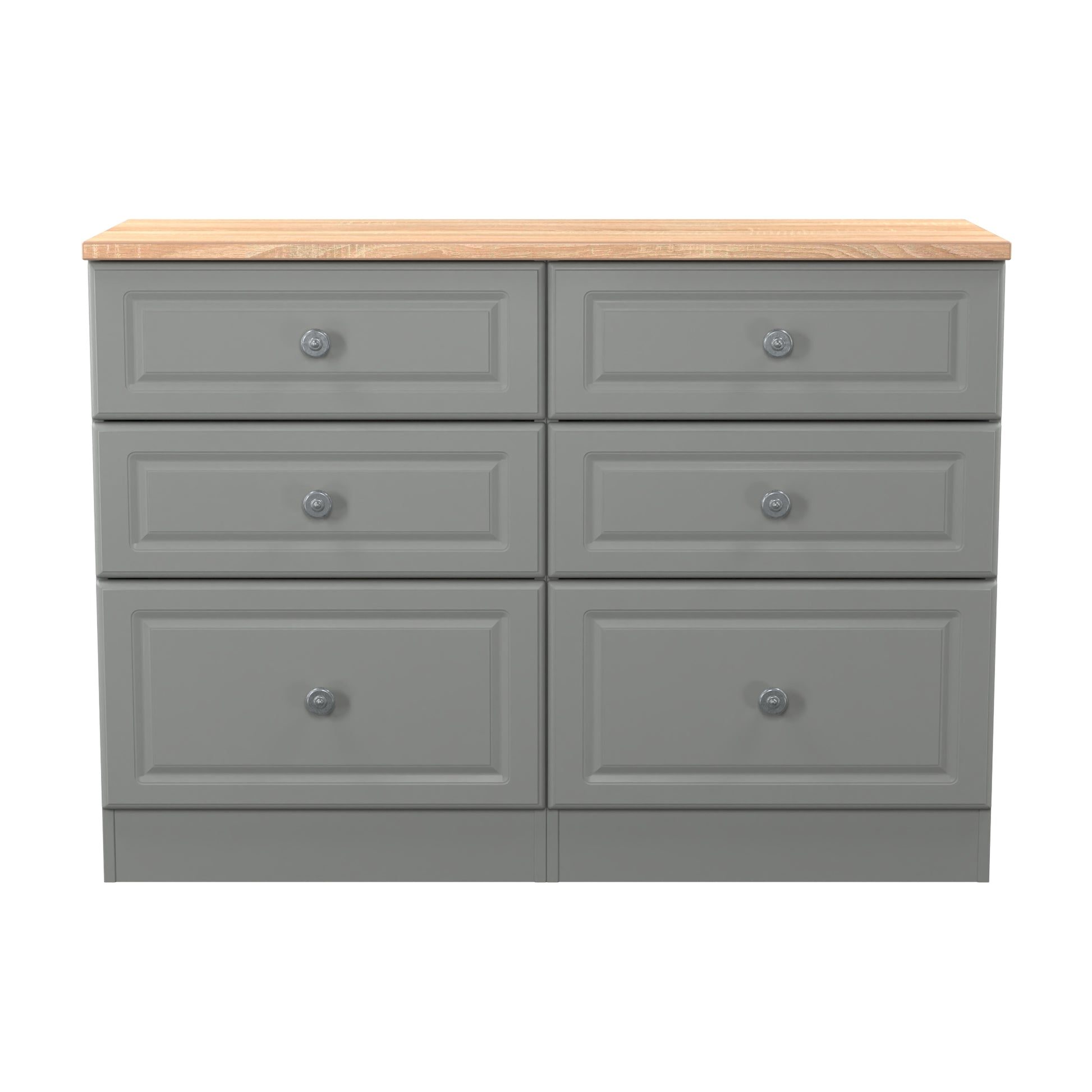 Norfolk Large Chest of Drawers Grey & Light Oak 6 Drawers 110cm