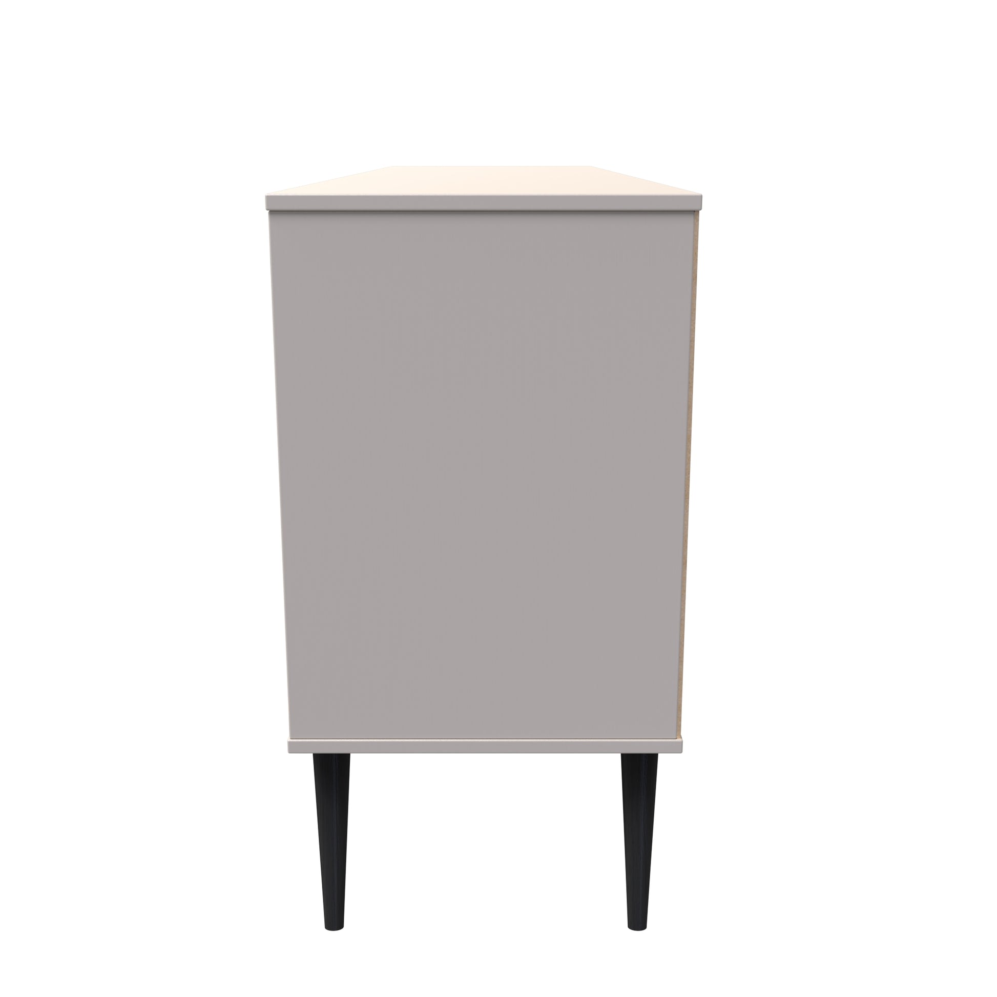 This wide storage unit features 6 storage drawers with a central shelf. Suitable for use as a TV/Media unit or sideboard. A modern and distinctive range. This ranges unique aesthetic is best represented by the distinctive "Pixel" patten of the drawer and door fronts. Also features Black Metal Handles and Black Hairpin Legs. Comes in a wide range of colours including eye cathching two tone colour combinations. All our furniture is made to order in the United Kingdom, to the highest quality. It is delivered within 10 working days direct to your location of choice by one of our two man delivery teams, and comes fully assembled (although legs may be removed to prevent damage in transit). Part of the Pixel Collection.