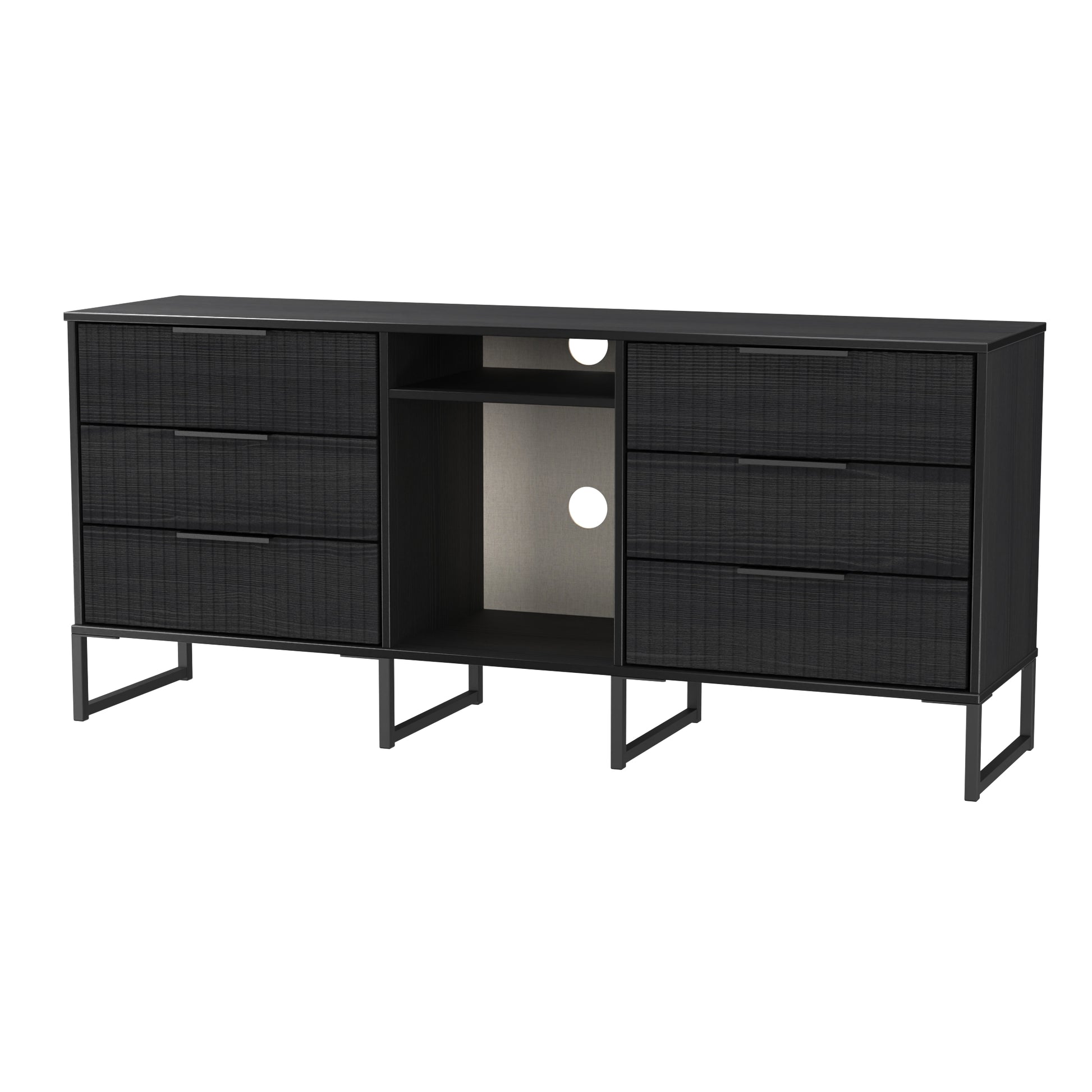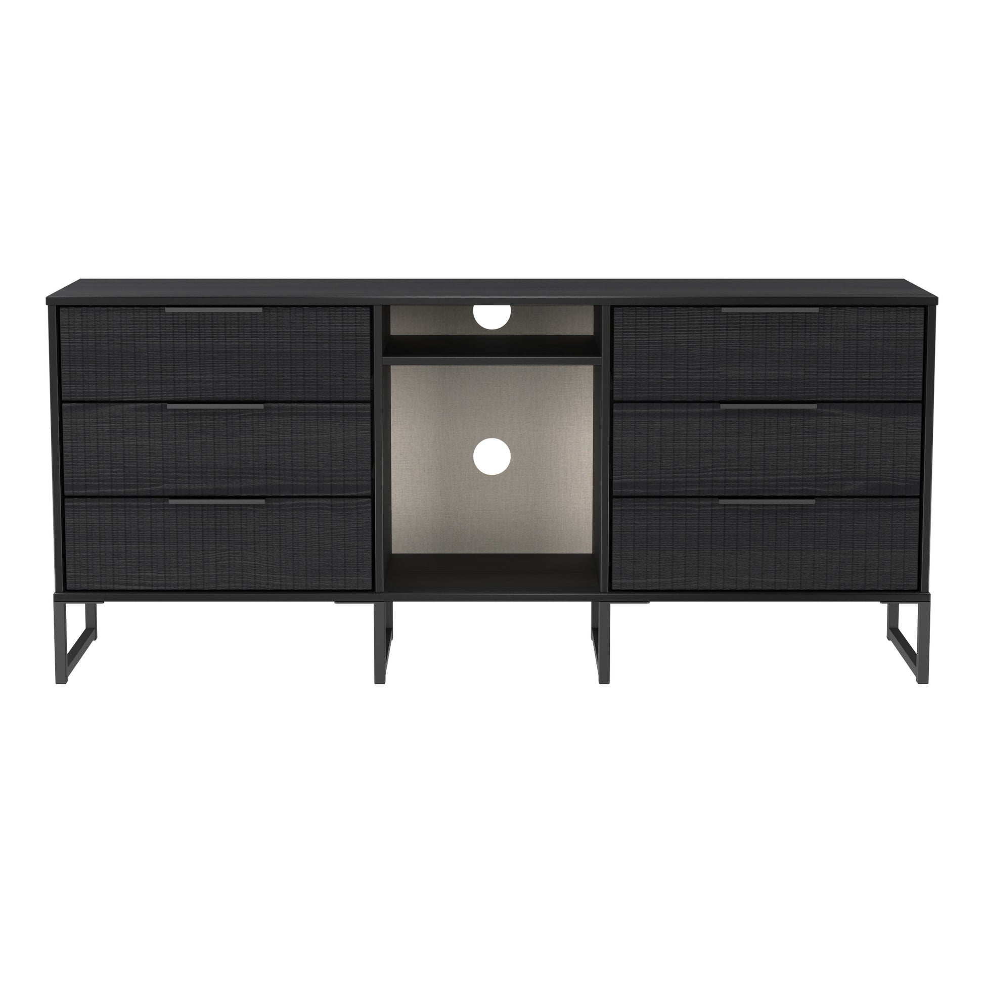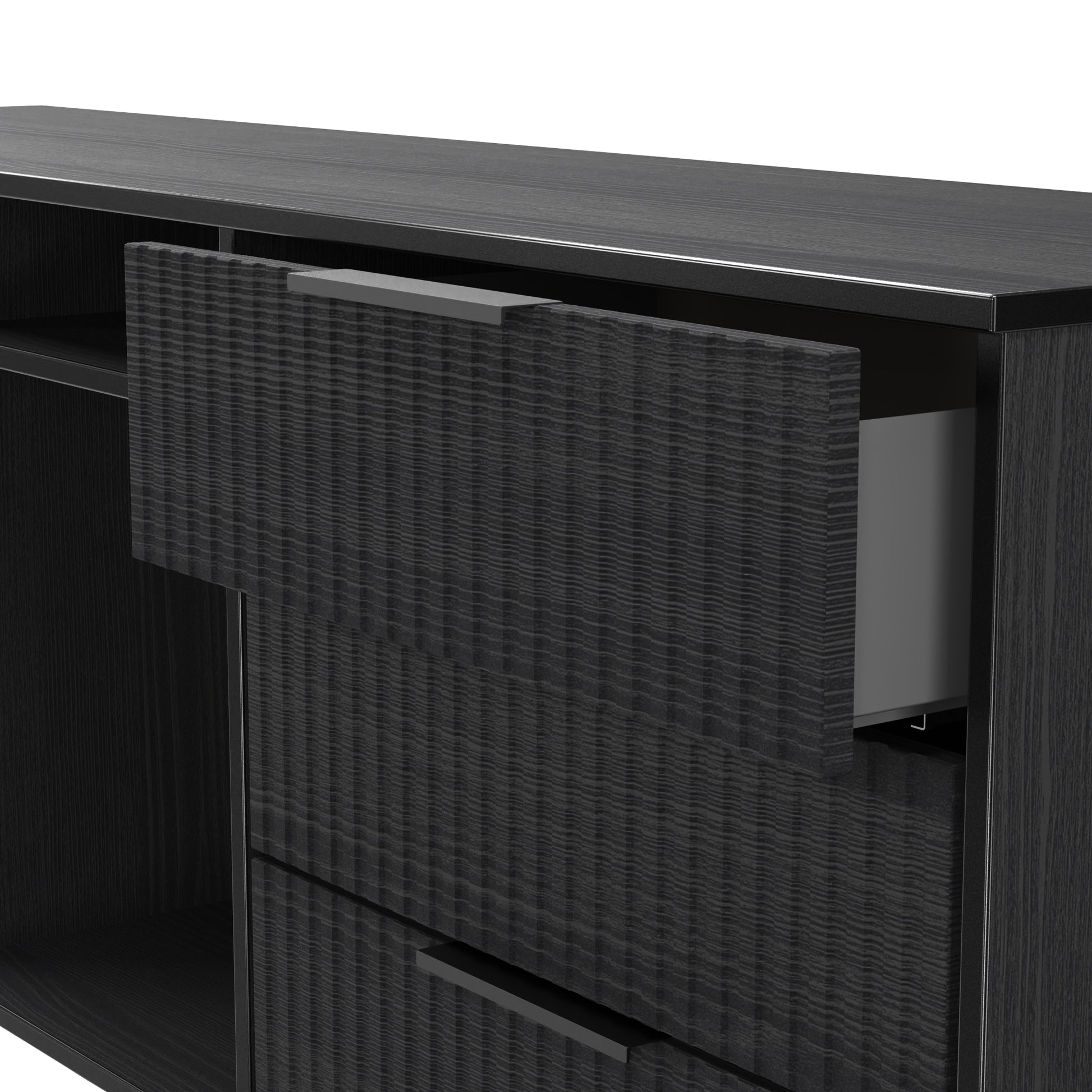 Fluted Large Sideboard Black 2 Shelves 6 Drawers 152cm