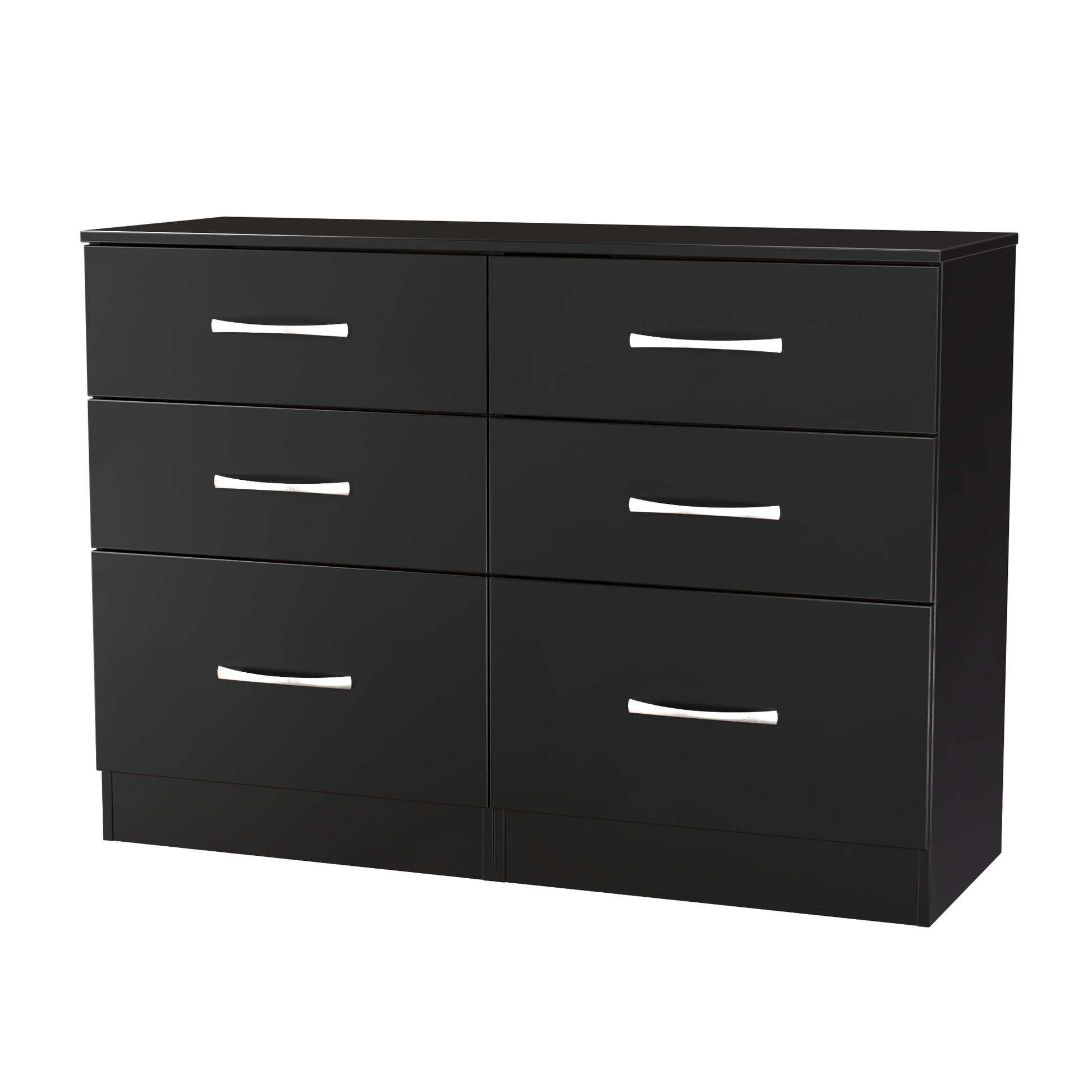 Avon Large Chest of Drawers Black 6 Drawers 110cm