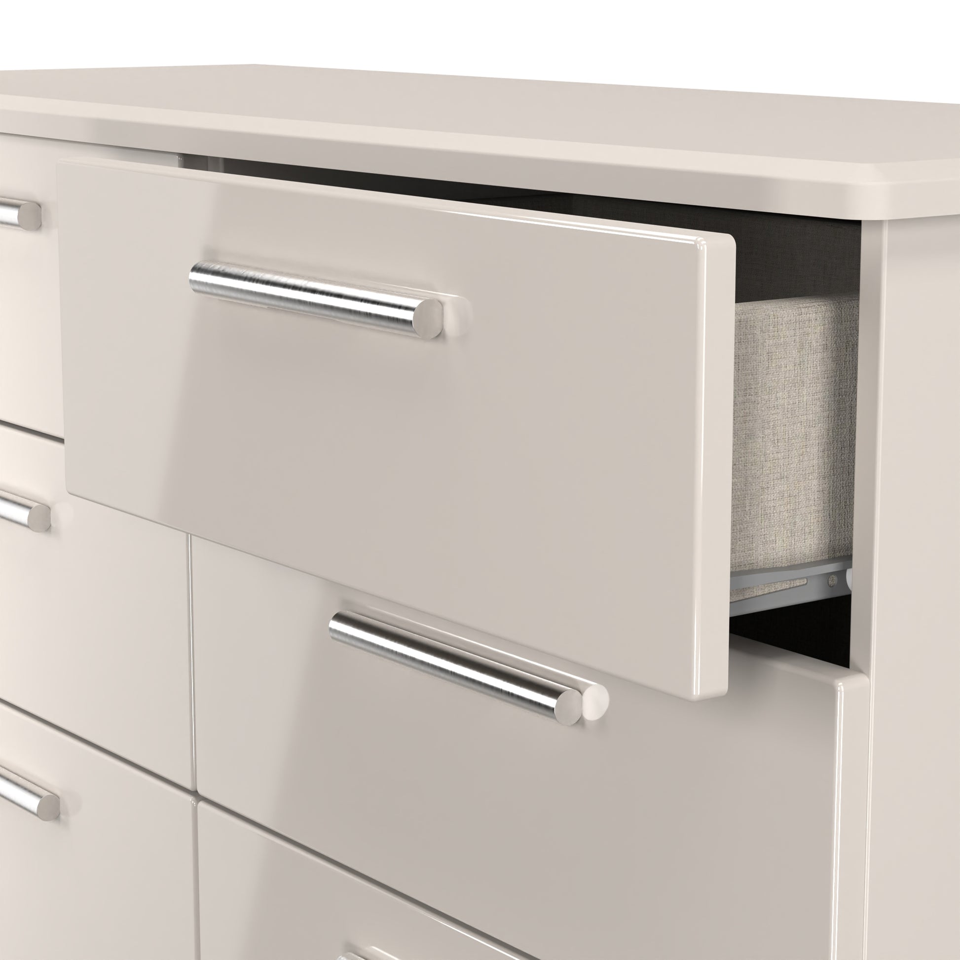 This double width 6 drawer chest of drawers is practical and stylish. Perfect for any home as a free standing storage unit. Constructed from sturdy materials, this stunning range has been designed with today's lifestyle in mind. With its clean lines and seductive colour palette, it will add sophistication and contemporary style to your home. All our furniture is made to order in the United Kingdom, to the highest quality. It is delivered within 10 working days direct to your location of choice by one of our two man delivery teams, and comes fully assembled (although legs may be removed to prevent damage in transit). Part of the Knightsbridge Collection.
