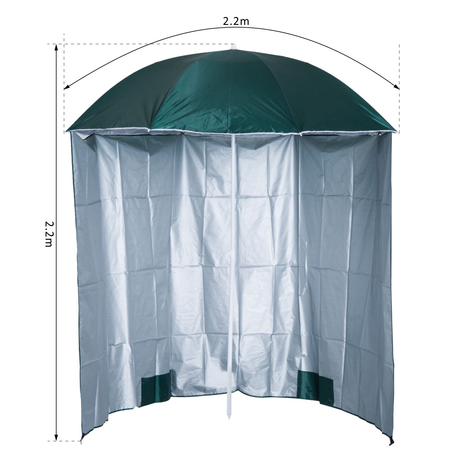 88" Arc 2.2M Fishing Umbrella Beach Parasol with Sides Brolly Shelter Canopy Shade with FREE Carry Bag Green