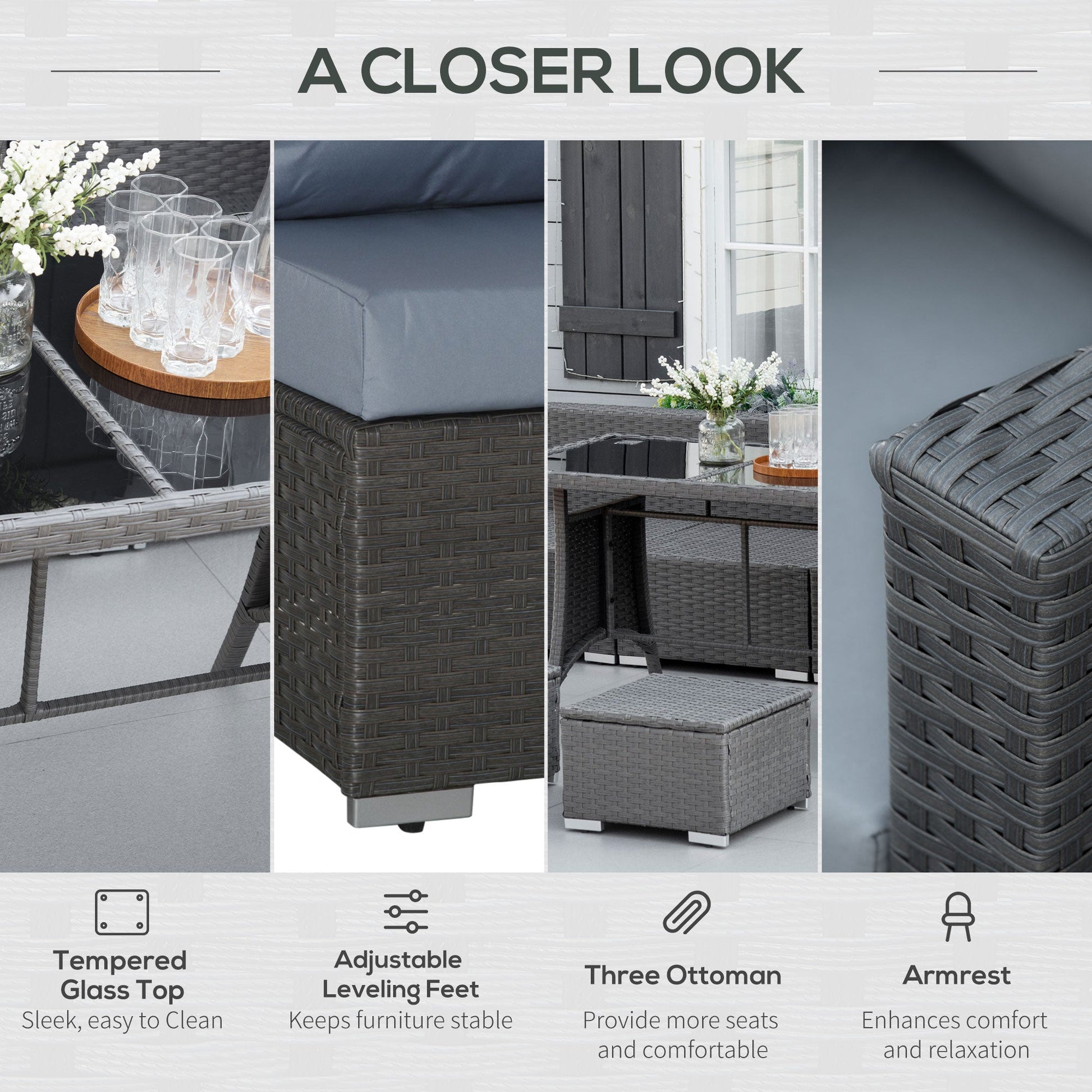 9 Seater Garden Rattan Furniture 10-Piece Rattan Corner Dining Sofa Set
