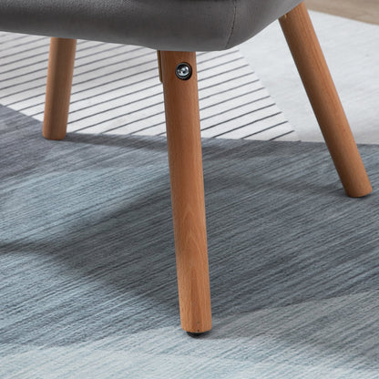 Accent Chair VelvetTufted Wingback Armchair Club Chair with Wood Legs Grey