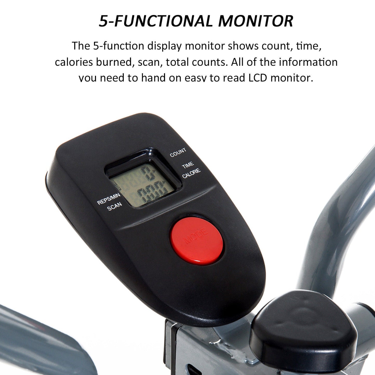 - LCD monitor tracks calories, time and distance, allowing you to keep on top of goals