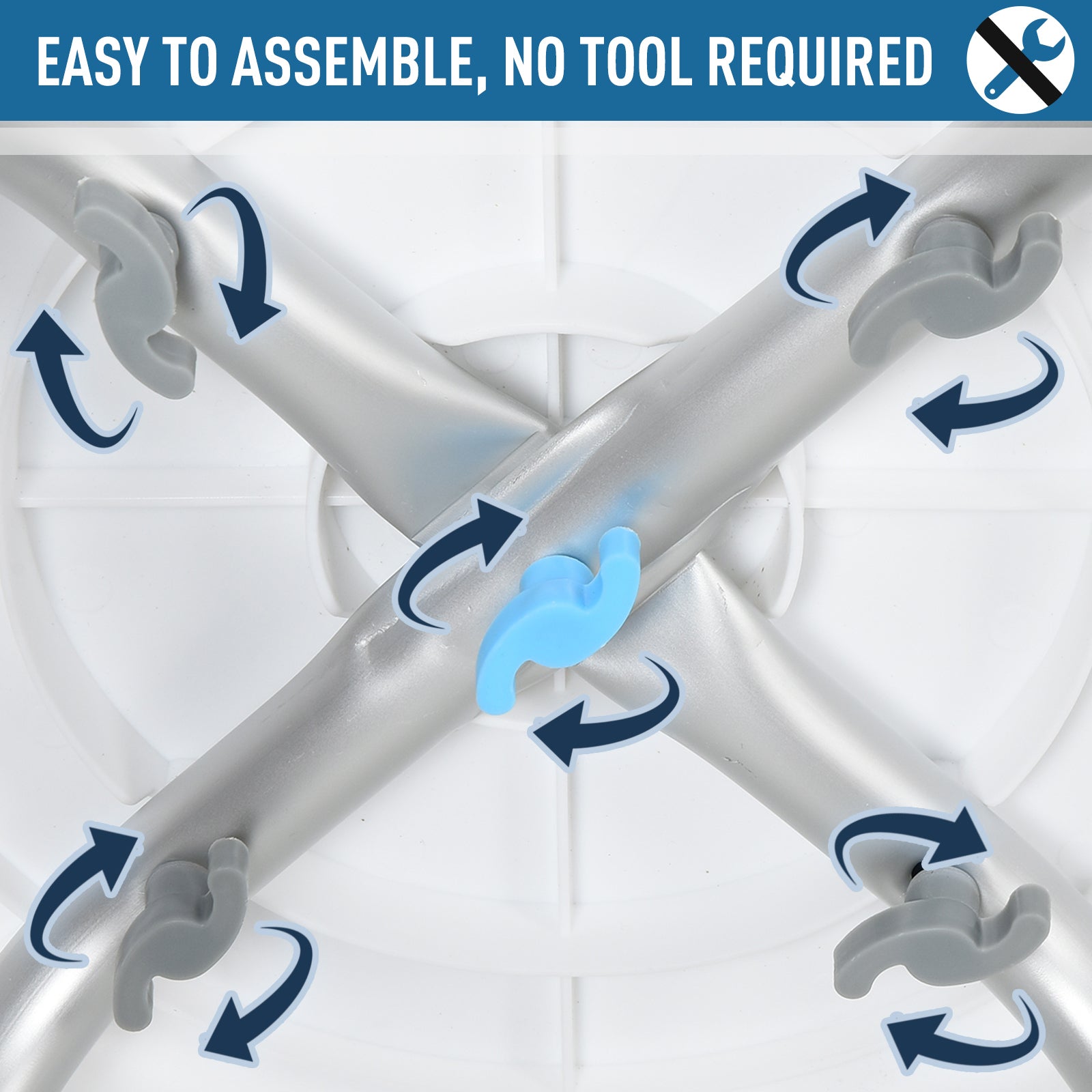 - Large round plastic seat, which swivels around full for ease moving side-to-side