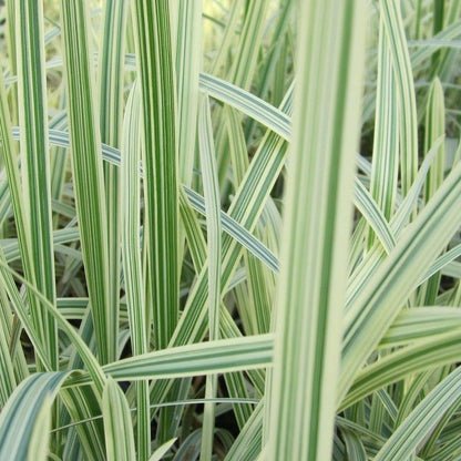 Benefits: A relatively vigorous plant but with attractive pinkie-red striped grass foliage in Spring maturing to yellow & white later in the year. It is graced with purplish-green flowering panicles in late summer.