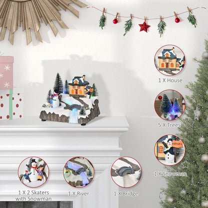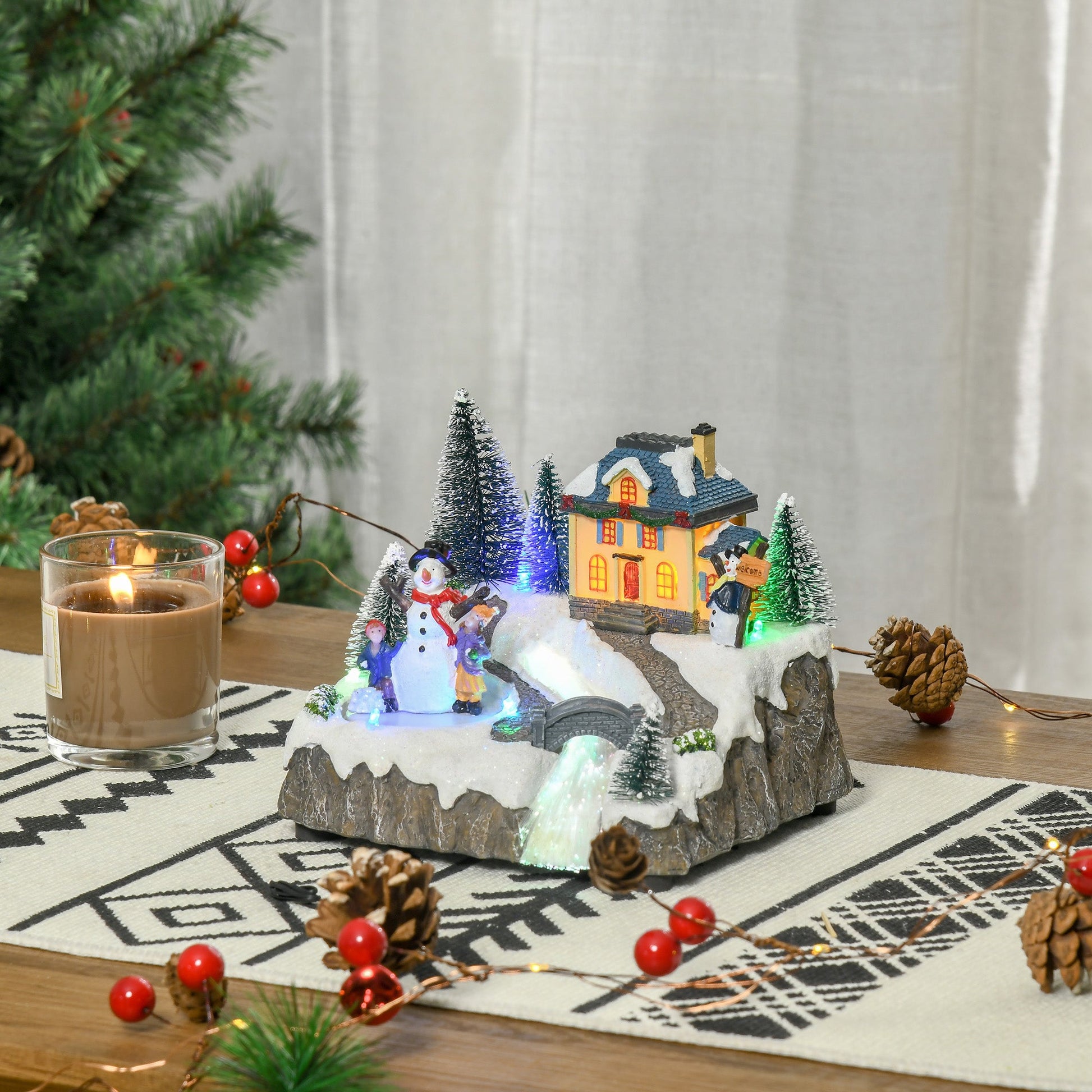 Animated Christmas Village Scene Musical Holiday Decoration with LED Light