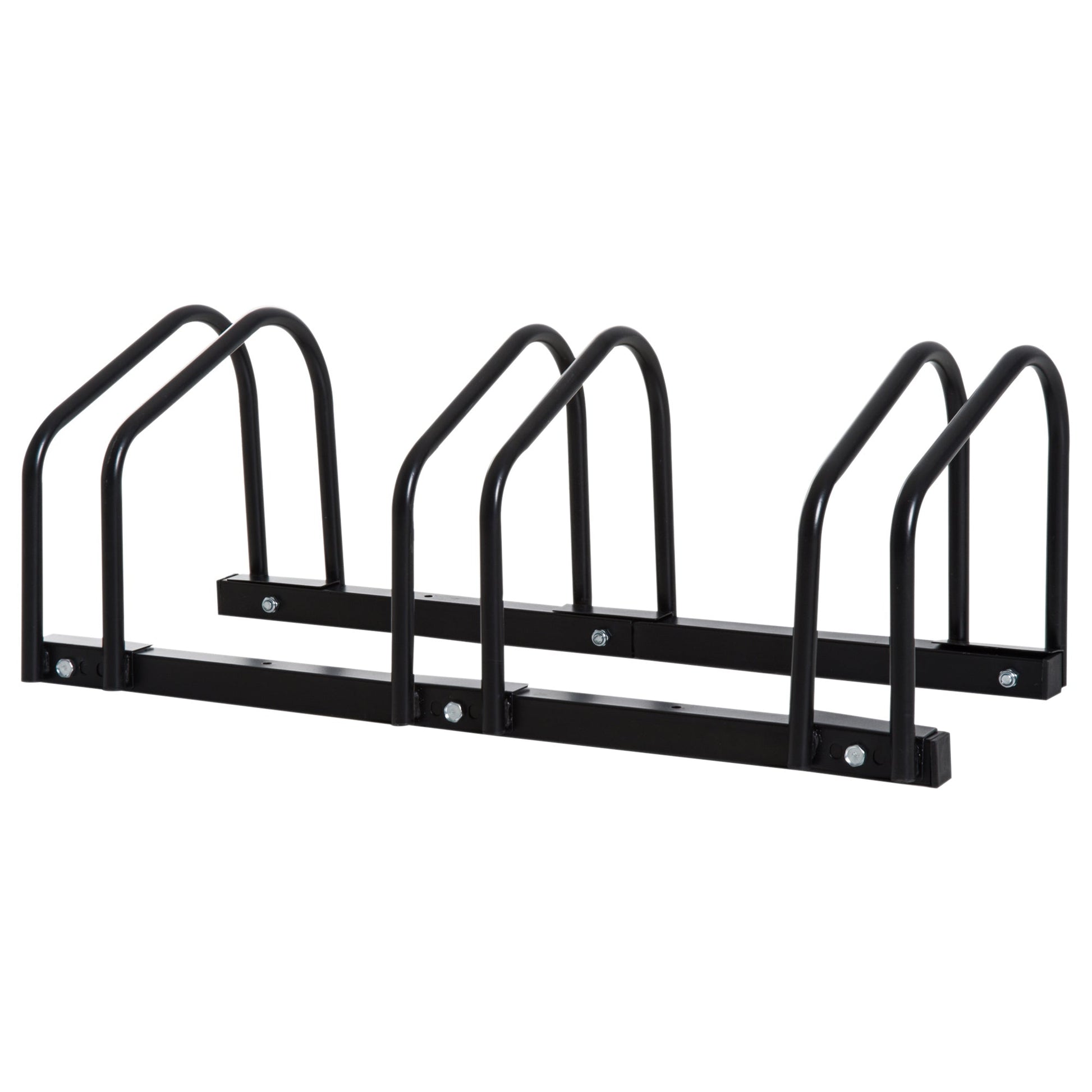 Store bicycles securely with this HOMCOM rack, which can hold up to three bikes. Ideal for sheds, garages and gardens, it'll keep your bikes upright, avoiding damage and scratches to its frame. Made from heavy-duty steel, it's covered in powder-coating, making it durable and suitable for outdoors. For smaller spaces, you can detach the stand, so it holds just a bike. A great way to keep your bikes organised, whilst saving space.