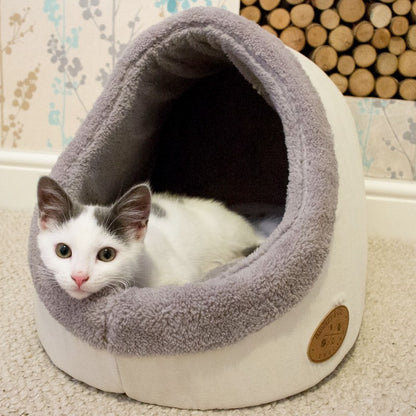 A high-quality product at a fantastic price that can't be beat, this cat igloo from Banbury is great resting spot for your cat in a classic igloo shape.It's made from a soft and cosy faux fur material and comes in a stylish cream colour schemeThis product is designed with a removable washable cushion. The bed is lined on the inside with a faux sheep shearling to ensure comfort and warmth for the pet. The bed comes with a fun teaser toy.This product is suitable for cats of all sizes.Specifications:Height: 47cmWidth: 19cmDepth: 37cmMaterial: Faux FurColour: CreamCat Size: All SizesDelivery RestrictionsWe are unfortunately unable to accept orders for being with the following post codes: AB,BT,CF,DD,DG,DT6-DT8,EH,EX,FK,G1-G9,GY,HS,IM,IV,JE,KA,KW,KY,LD,LL,ML,PA,PH,PL,PO30-PO41,SA,TA,TD,TQ,TR & ZE.