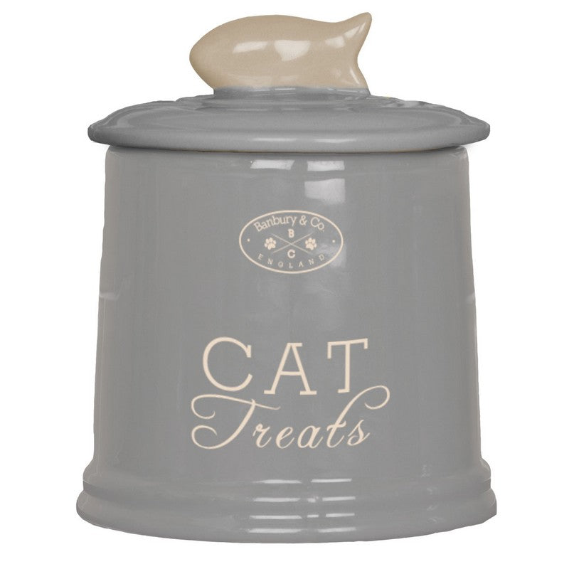 Cat Treat Storage Grey Ceramic 20cm by Banbury