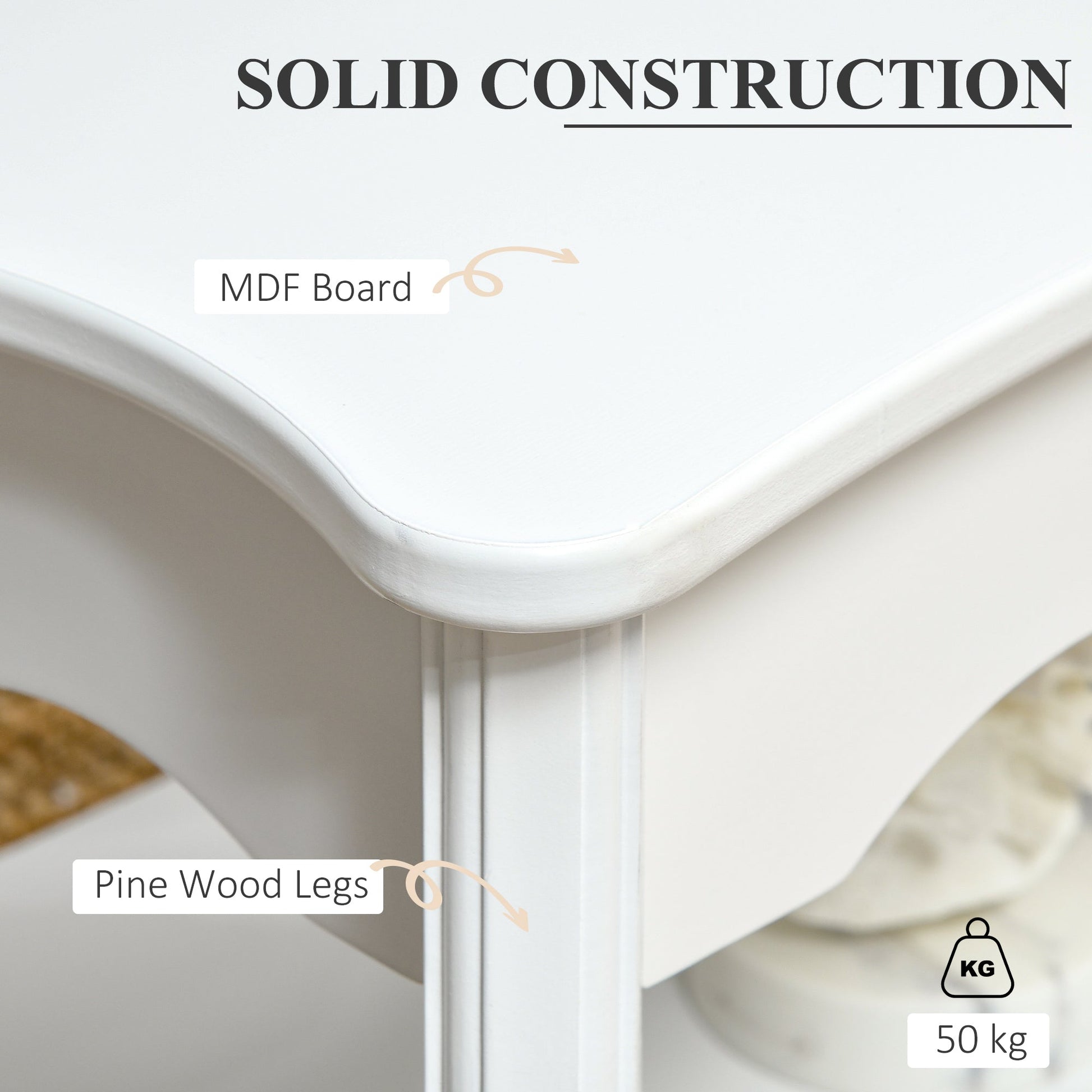This HOMCOM Coffee table in white will be a great addition to your living space. Designed with a bottom shelf for extra storage for books and magazines. The contemporary styling offers a rectangular shape with curved legs, with the ability to be moved easily with its lightweight construction. It is easy to keep clean with low maintenance, and will match room decor.
