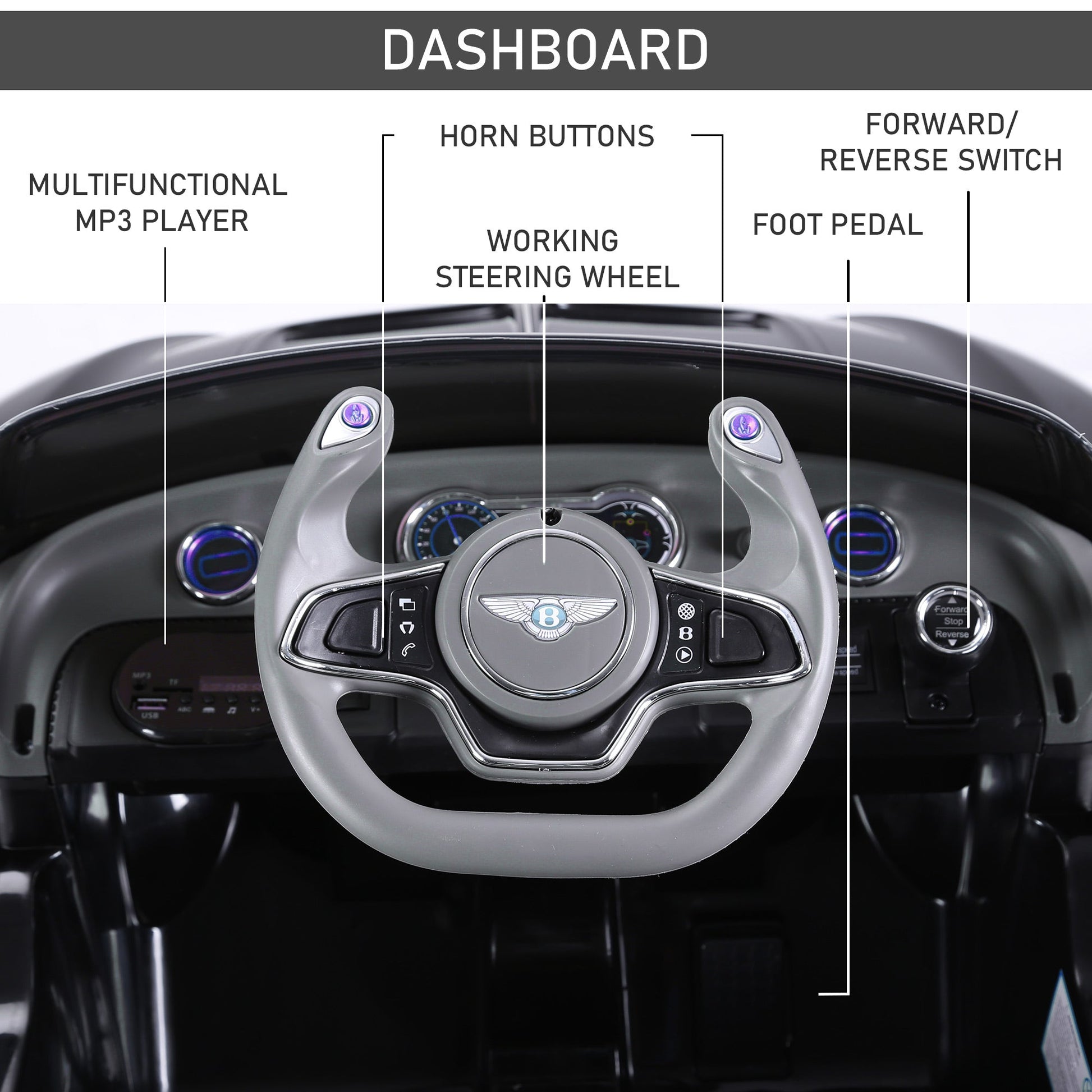 Compatible Electric Kids Ride On Car Bentley GT 12V Battery Powered Toy Two Motors with LED Light Music Parental Remote Control for 3 - 8 Years Black Bentley