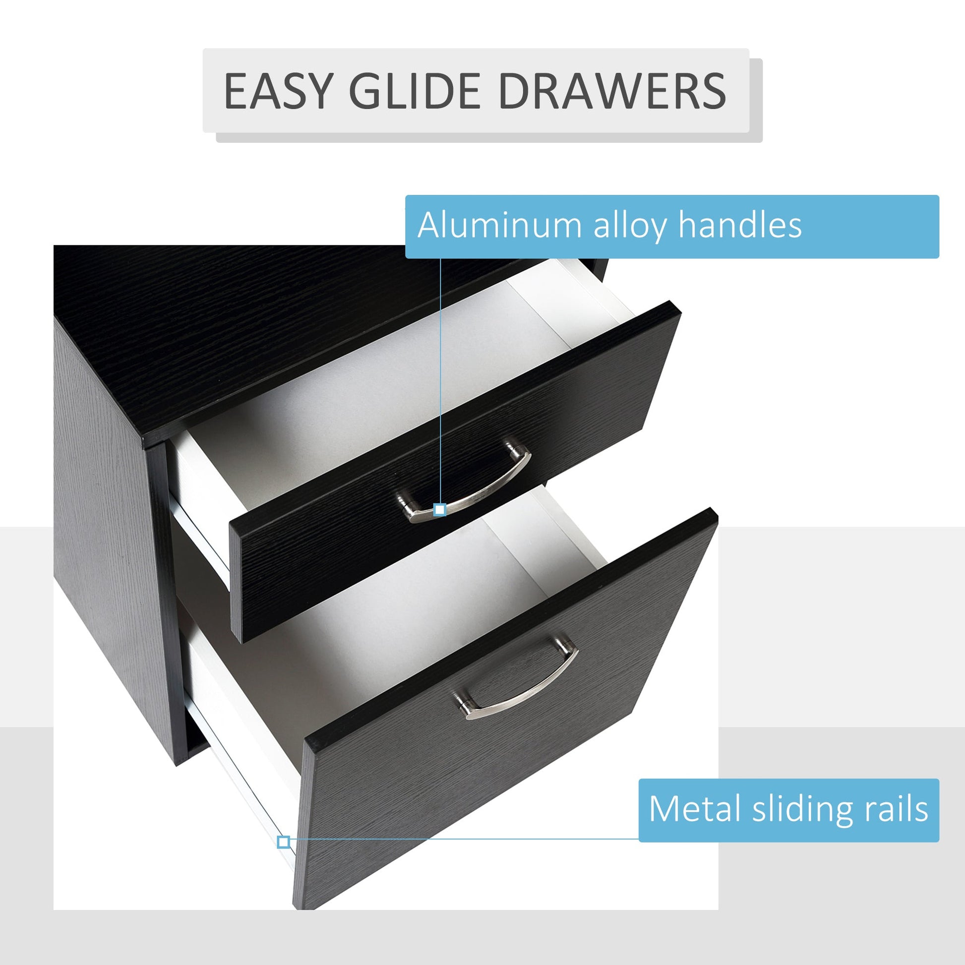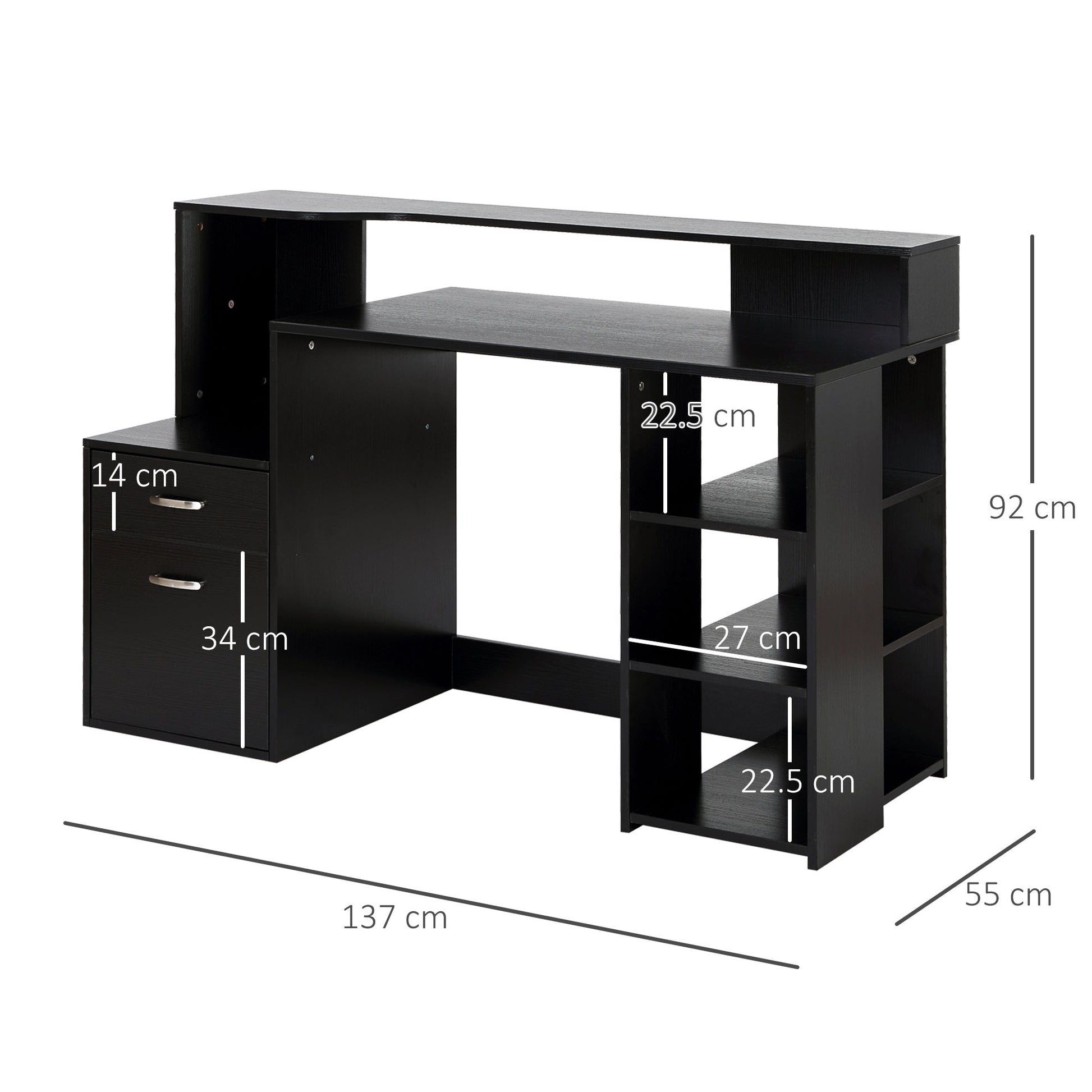 Take your office work set-up to the next level: go for this computer desk with drawers from HOMCOM. A multi-use design, it features three side shelves, a two-drawer storage cabinet, a large worktop and a high top back, giving you more than adequate room for working from and storing everything in a compact place. With stand-out metal accents to finish, this desk with storage is made with ultimate style in mind – something you'll love inviting it into your work space.