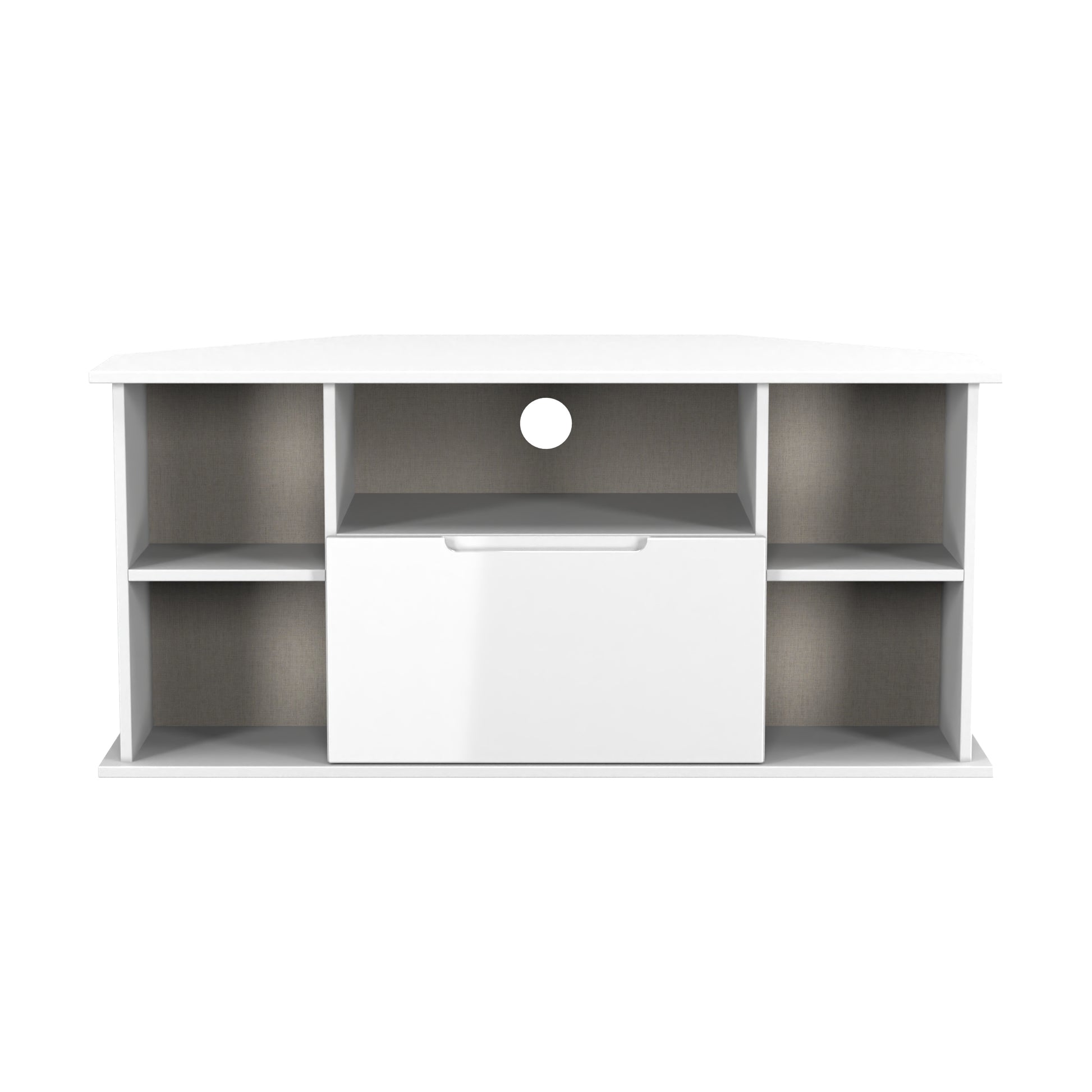 Milan Corner Corner TV Unit White 5 Shelves 1 Drawer 110cm
