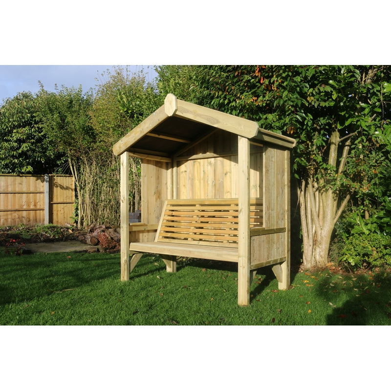 Enhance your garden and create your own peaceful sanctuary with the magnificently handcrafted Croft Cottage 3-Seater Arbour. Enclosed style with windows and cup rests on each side to provide wider views of your garden while enjoying a light refreshment. This arbour is also available in a more compact 2-seater version. Accessories and cushions shown for illustration only. Made with responsibly-sourced timber and pressure treated for greater durability. Constructed with rust-resistant galvanised zinc bolts. A product proudly made in Great Britain.Delivered on a pallet part assembled. Easy quick assembly with 2 people.