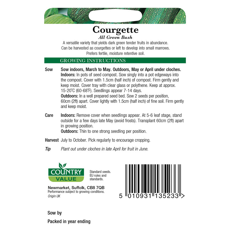 A versatile variety that yields dark green tender fruits in abundance. It can be harvested as Courgettes or left to become small morrows. It is a quick to mature and will crop throughout the summer. Grow your own delicious produce in any sized garden with a selection of Country Value vegetable seeds. Producing your own food is easy and provides a sustainable way to eat well and enjoy healthy eating. Whether you are looking for herbs, runner beans or seed potatoes, we have everything you need to create a vibrant and varied kitchen garden.