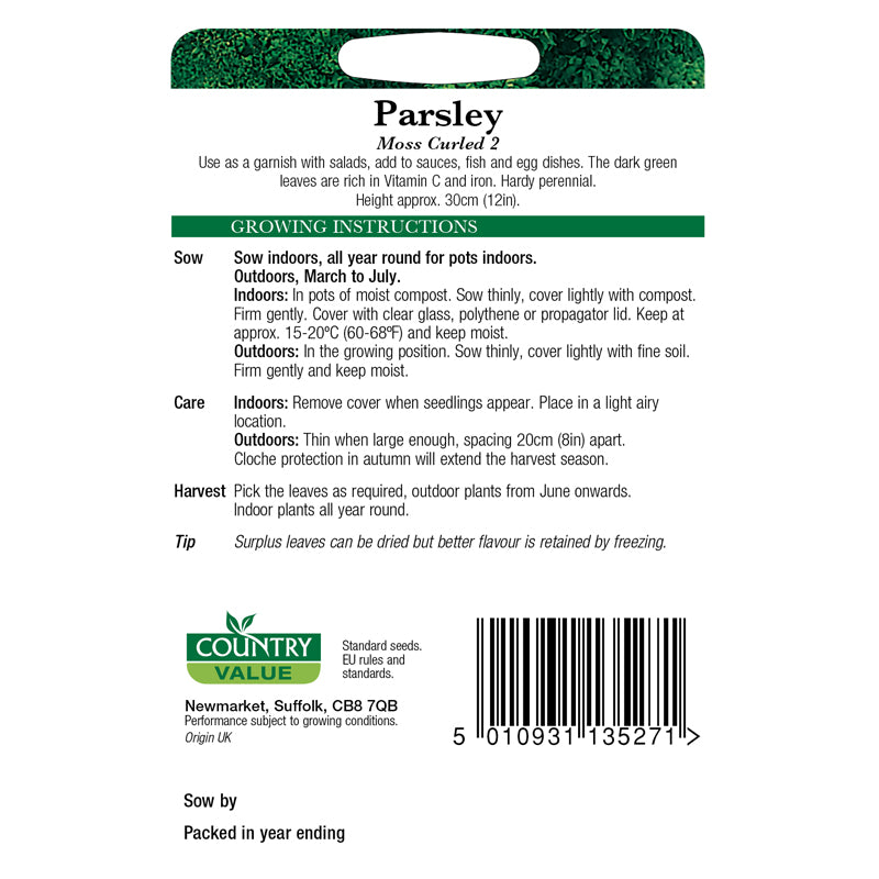 Use as a garnish with salads, add to sauces, fish and egg dishes. The dark green leaves are rich in Vitamin C and iron. Hardy perennial. Grow your own delicious produce in any sized garden with a selection of Country Value vegetable seeds. Producing your own food is easy and provides a sustainable way to eat well and enjoy healthy eating. Whether you are looking for herbs, runner beans or seed potatoes, we have everything you need to create a vibrant and varied kitchen garden.