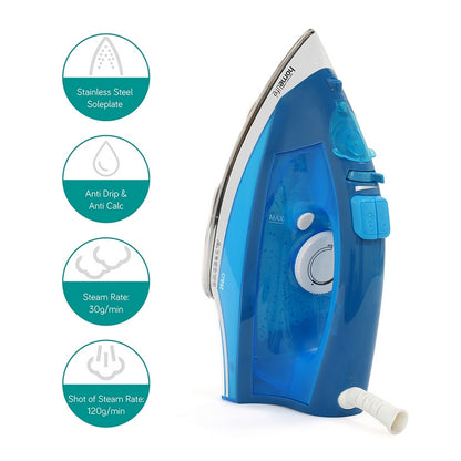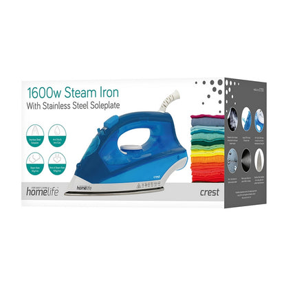 Crest Steam Iron with Stainless Steel Soleplate Blue - 1600W