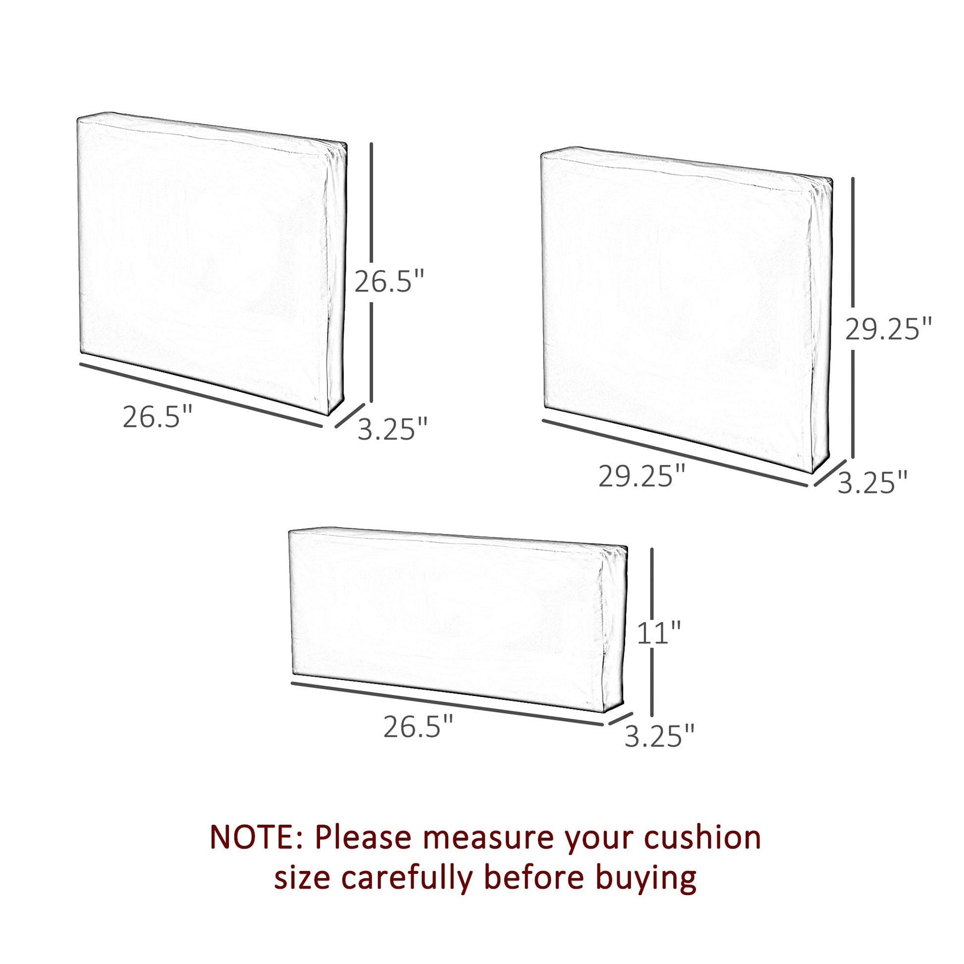 - 3 Small Seat Cushion: 67L x 67W x 8Tcm