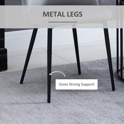 Transform your home and dining space instantly with this set of two chairs from HOMCOM. Armless design with smoothly curved lines gives both seats a soft and elegant look which works almost everywhere. Comfortable as it is beautiful, they combine a curved back for you to lean into, deep cushioning on the seats and a wide seat, whilst the velvet-feel polyester fabric is soft and smooth on the skin. Perfect for the living room, bedroom and office.