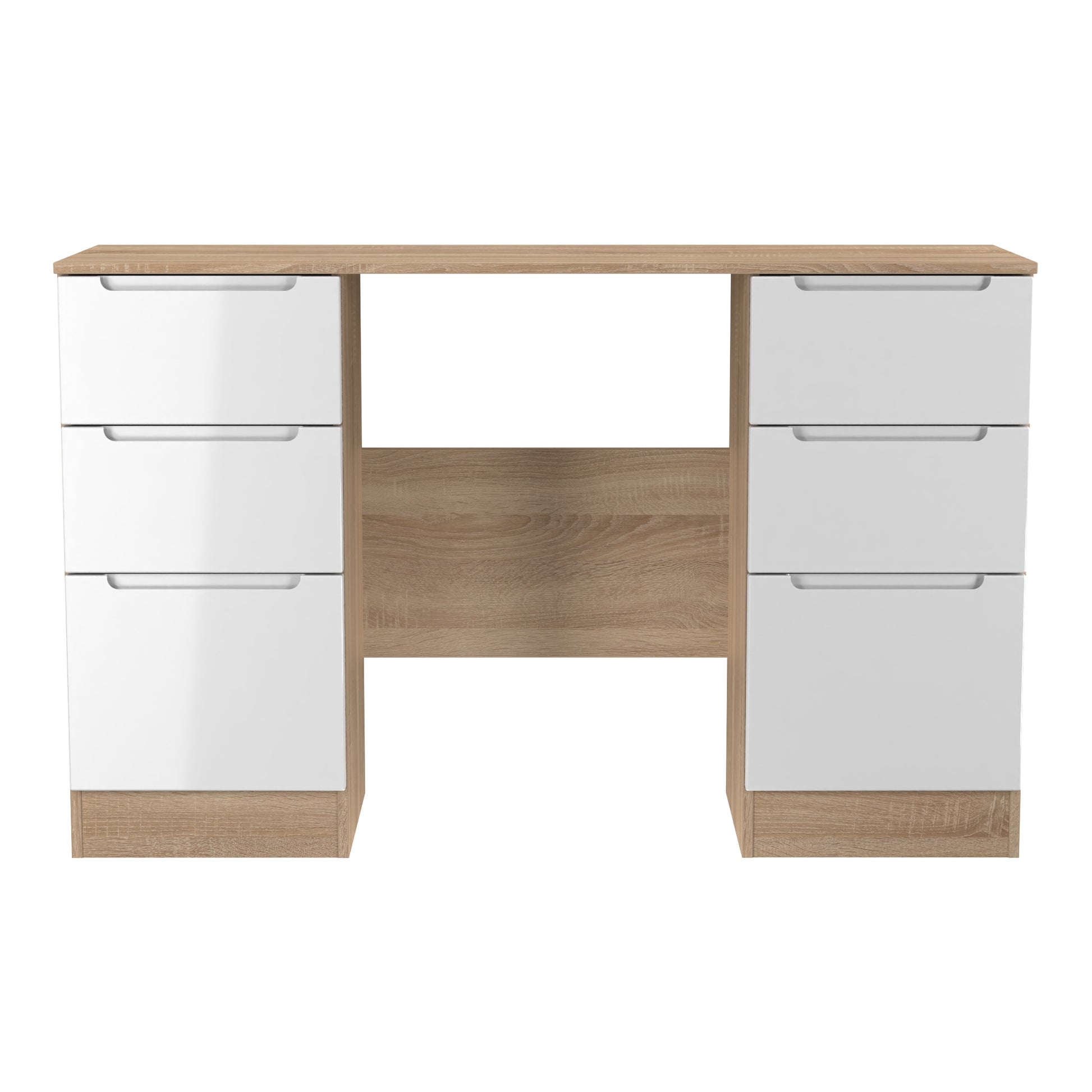 This practical 6 drawer kneehole desk/vanity is perfect for any bedroom or office. A matching stool and mirror (in 2 sizes) are also available. An exciting new range ideal for the modern contemporary home it comes with distictive indented handles, perfect for the 21st century home. All our furniture is made to order in the United Kingdom, to the highest quality. It is delivered within 10 working days direct to your location of choice by one of our two man delivery teams, and comes fully assembled - Please Note that any handles or legs may be removed durning transit to avoid the risk of damage. Part of the Milan Collection.