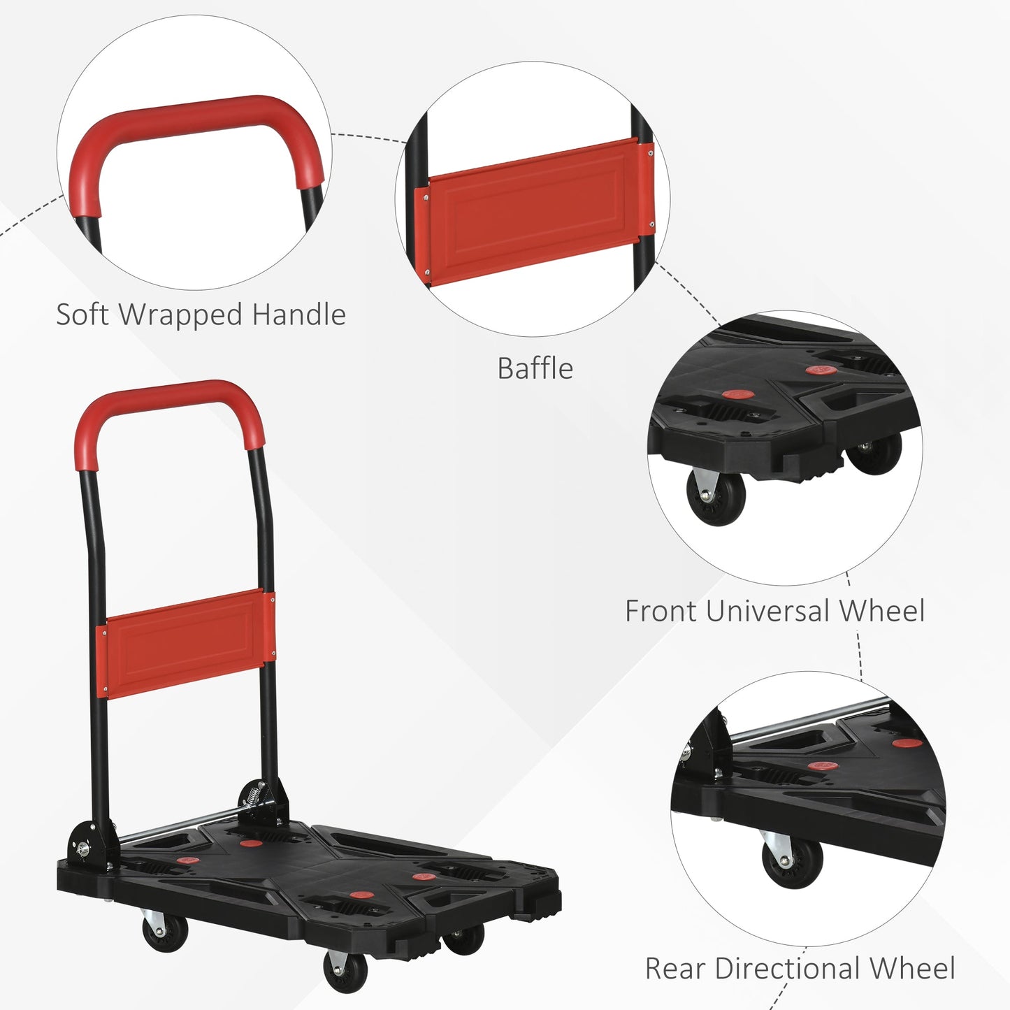 DURHAND Platform Trolley on Wheels Folding Hand Truck for Heavy Lifting and Easy Transportation 150KG Black