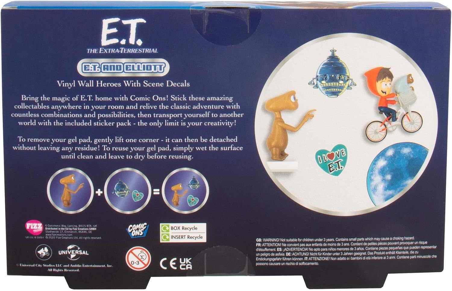 These collectable figurines have a 3D front and a flat back, allowing you to stick them to the wall. The possibilities are endless… Simply peel the stickers off the back of your Comic Ons and stick them to the wall to create your own E.T phone home scene from the cult film.