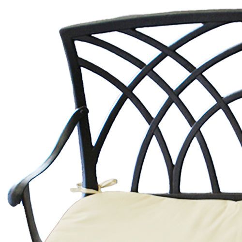This cast aluminium bench is ideal for a patio or terrace area and would fit easily in any garden. The bench comes with a cream seat cushion for added comfort. It is relatively lightweight, making it easy to move, and requires minimal maintenance, which means it can be left outside all year round. The distinctive, elegant design is classic and timeless.