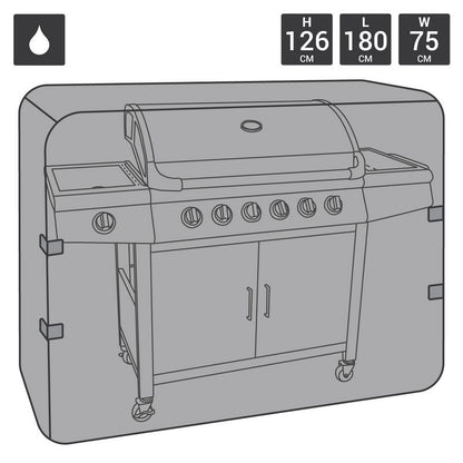 This furniture cover is beautiful in its simplicity and an ideal choice if you are shopping for exceptional value without compromise on product quality. Suitable for those looking to transform their garden and spend more time outdoors with their loved ones.The Essentials collection will effortlessly complement any garden with a sleek design and durable build.Help protect your garden furniture and keep it looking at its best for years to come. Highly durable polyester construction allows you to enjoy garden furniture for longer. The Wensum Premium Extra Large Universal Garden BBQ Cover is suitable for extra large gas BBQs and will ensure protection from rain, dust and dirt as well as preventing rusting. It is heavy duty, durable and has an easy-wipe finish. It is ideal for covering your BBQ when not in use, overnight and out of season.Product SpecificationProduct Type: Furniture CoverMaterial: PolyesterColour: BlackPattern / Finish: PlainNumber Of Seats: Not ApplicableSeat Style: Not ApplicablePadded Seat: Not ApplicableCushion Colour: Not ApplicableCushion Pattern: Not ApplicableTable Shape: Not ApplicableGlass Table Top: Not ApplicableParasol Included: Not ApplicableAssembly Required: NoAdditional featuresDome shaped for greater convenience Easy wipe waterproof finishHeavy dutyFully lined and stitchedHook and loop fastener straps to secure the coverAftercare instructions includedDimensions: 126 (H) x 75 (W) x 180 (D) cmLifestyle images and accessories shown are for illustration purposes only.