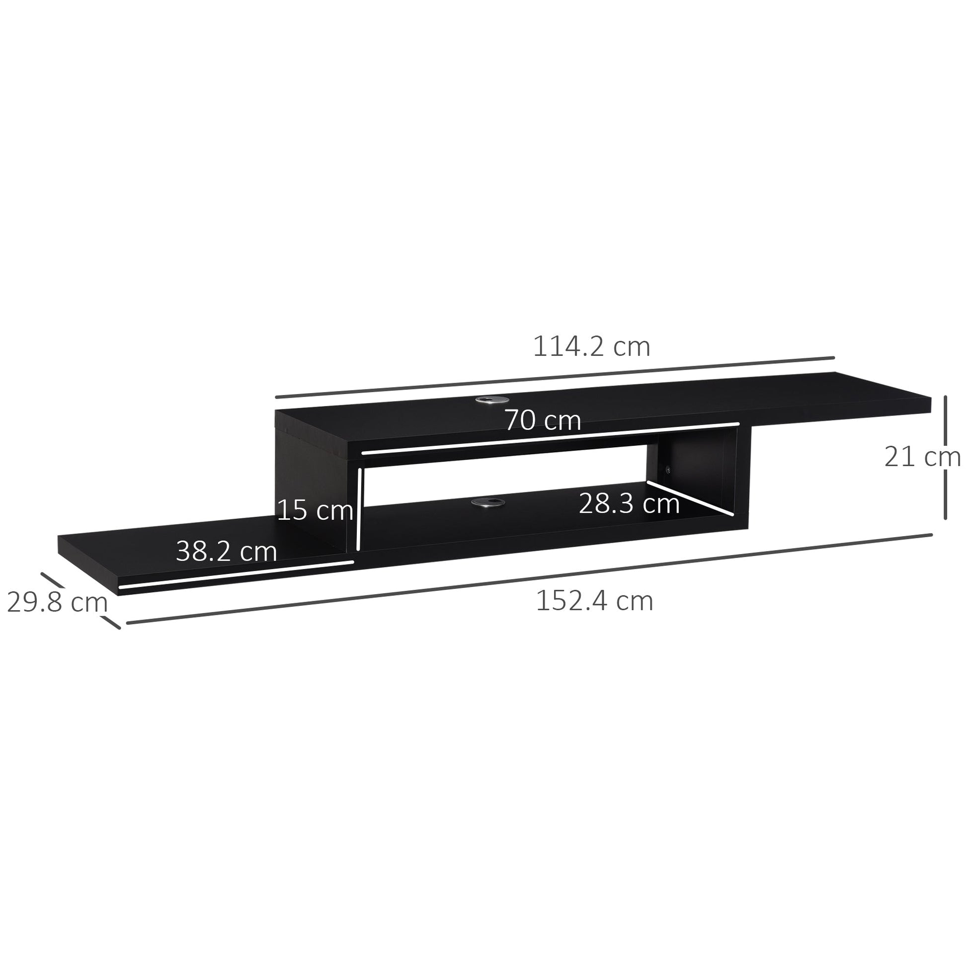 A fun, floating look in your living room starts with this tv unit from HOMCOM. Made from particle board, it comes in a two-tier design which holds consoles, books and more up to 20kg - effortlessly clearing up floor mess and making your space look tidy. Made from particle board, it's sturdy and durable, in a grey colour so it blends in beautifully into your wall. Please note - this media unit is not for supporting a TV.