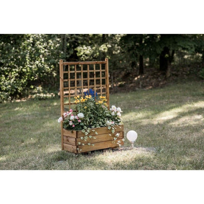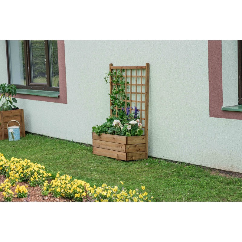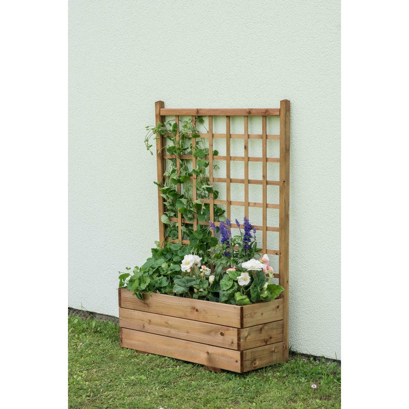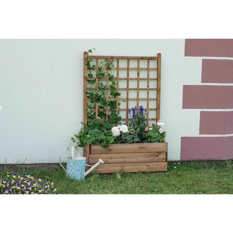 The Rectangular Trellis Planter features an 80cm wide built-in straight trellis which is ideal for supporting climbing plants. The garden planter has a large rectangular flower box that can accommodate different plants. Both the planter and integrated trellis are pressure-treated to protect against wood rot and decay. The brown finish on the FSC certified timber is a classic colour that suits many garden styles.