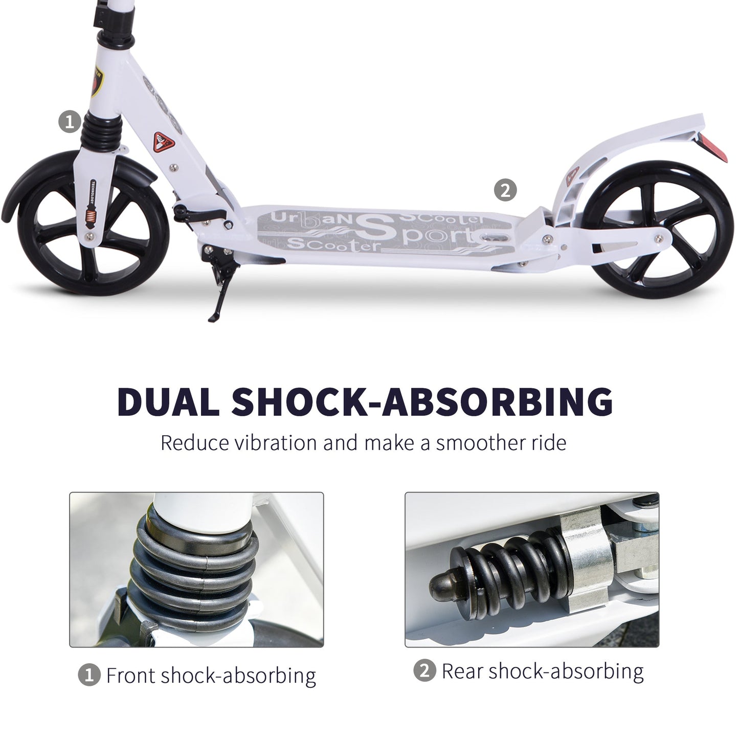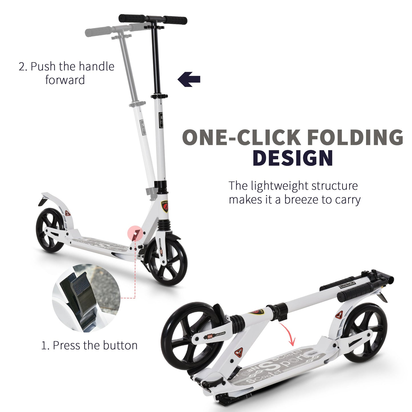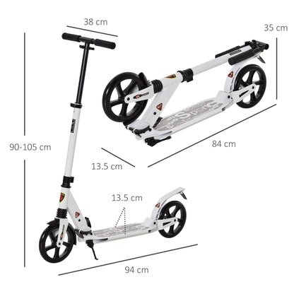 Ride around with this kick scooter from HOMCOM. The kick scooter adult frame is sturdy yet lightweight. It is crafted into an innovative folding design, allowing the commuter scooters to be opened and closed quickly. Adjustable from 90cm to 105cm, the 2 wheel scooter's handlebar is able to comfortably suit a wealth of heights. It is finished with a rear-wheel fender braking system, ensuring not only is this scooter safe to ride on, but it is also both safe and fun.