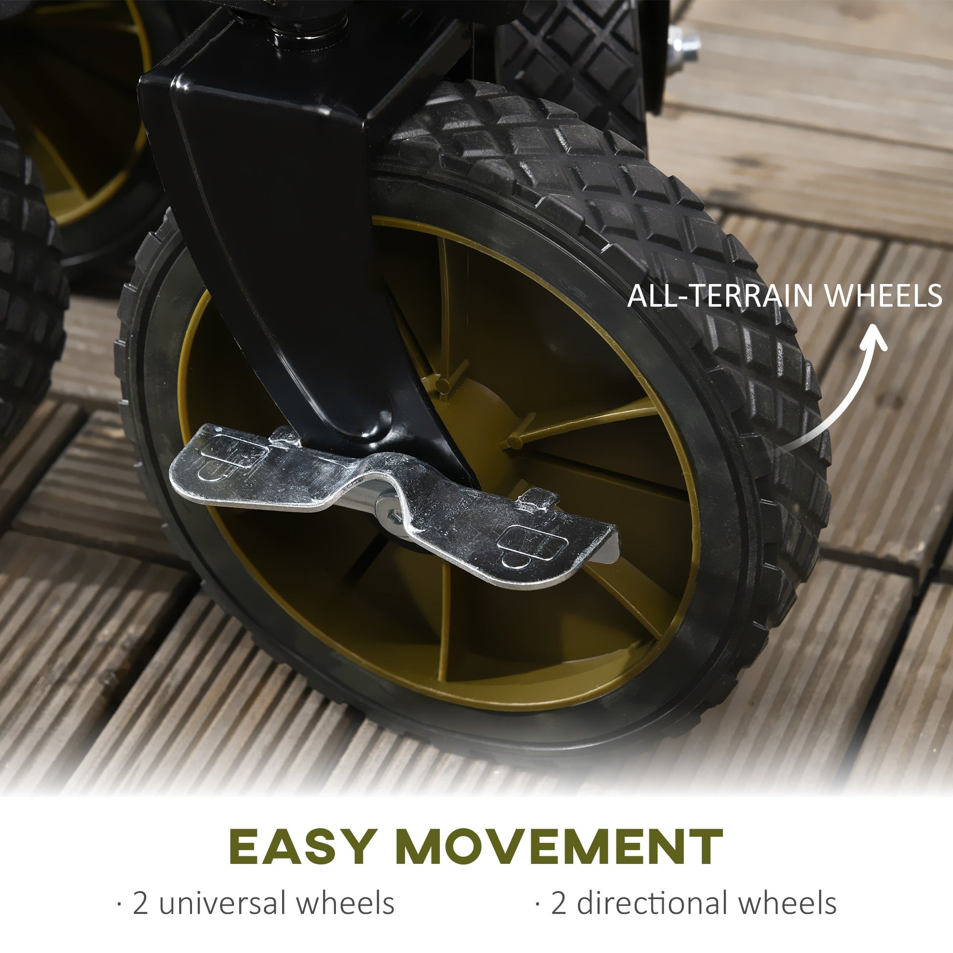 As a beach trolley, for festivals - or general help around the garden and home: this Outsunny trolley is here to help for practically anything. Combining a folding steel frame for a strong structure, it's fitted with a fabric bag to hold everything safely in place. Four wheels to move it around easily; brakes so it stands in place whenever you need. The adjustable handle means you can push and pull this trolley around whenever you want - complete with a top cover to protect inner contents safely.