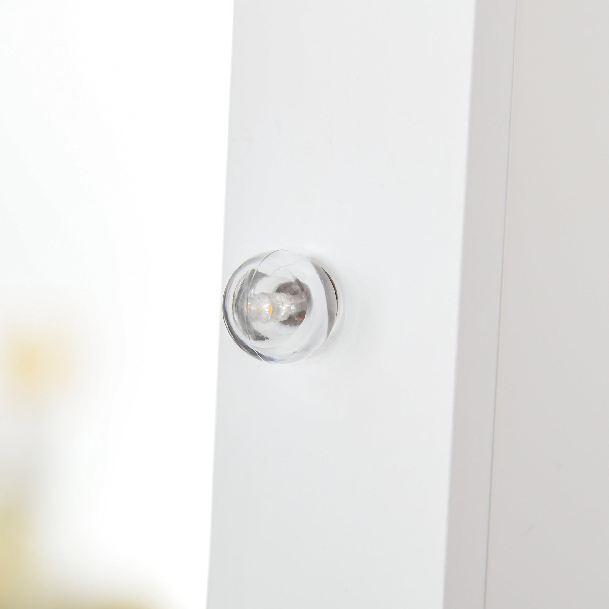 This floor standing jewellery cabinet from HOMCOM is perfect for keeping all your make-up, jewellery and other accessories together in a place. On the outside is a full-length mirror with battery powered LED lights that create a soft and flattering glow, and on the inside is a fully-lined interior that can house up to 32 pairs of earrings, 70 rings, 12 hooks and three shelves. Made from sturdy MDF board, the mirror can be adjusted to three different levels to suit your preferences. Clean, stylish and contemporary, this organiser is a beautiful addition to any style surrounding.