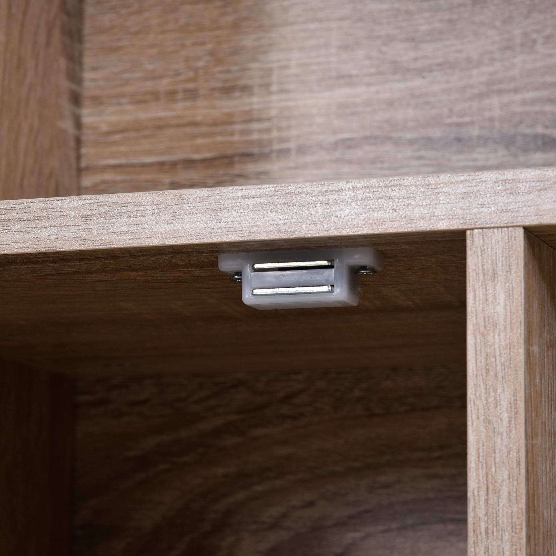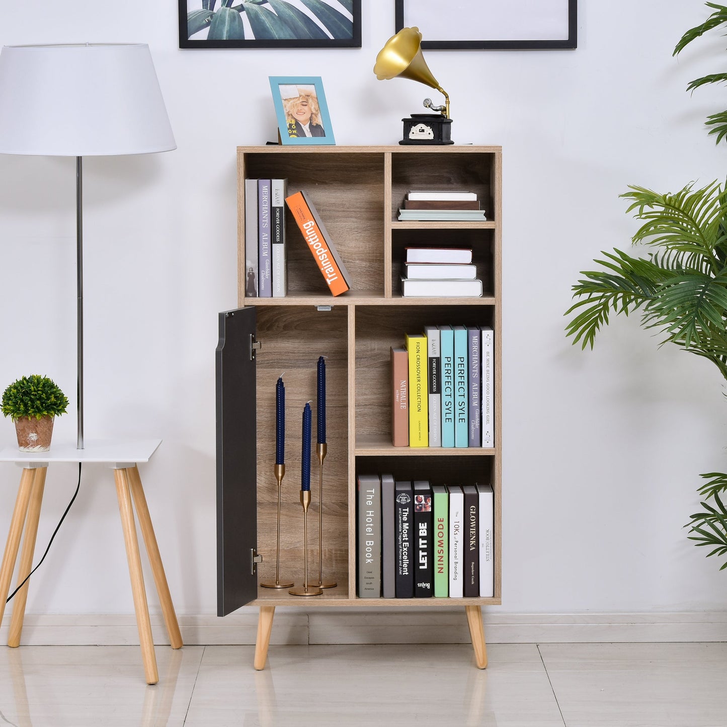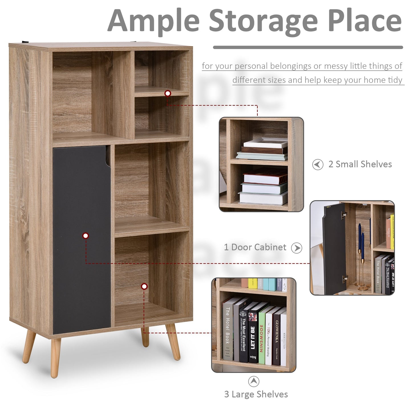 Give your home a beautiful way to keep everything organised with this small bookshelf from HOMCOM. A modern design which will sit anywhere with ease, it is made from robust particle board for continued reliable use. The bookcase with door features five compartments and an oblong cupboard, giving you plenty of discreet and open storage and display space. Four legs provide balance and keep the unit elevated, helping to encourage air circulation and prevent damage to the bottom.