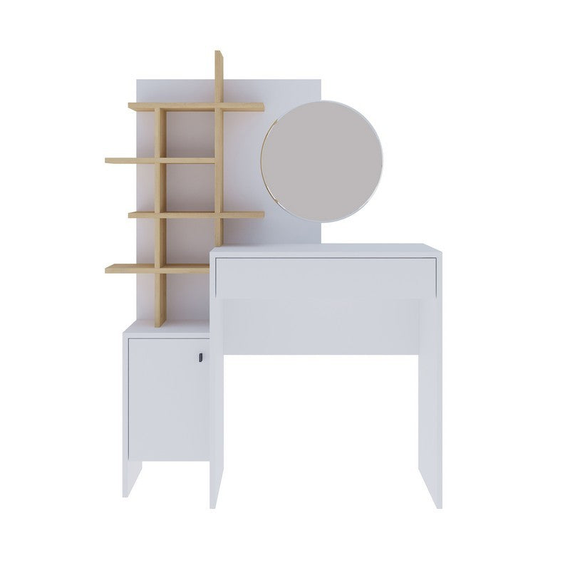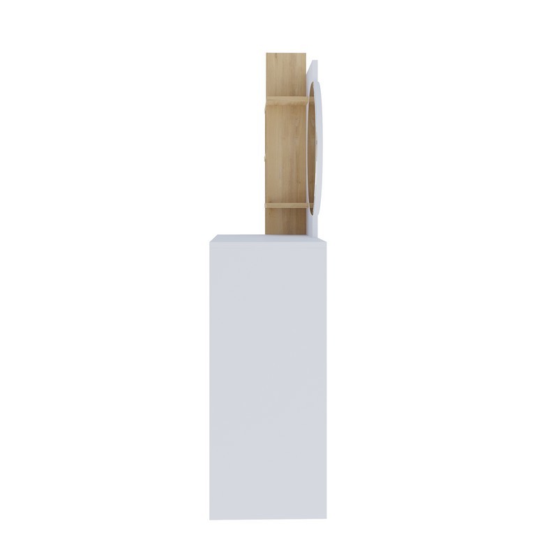 Freyja Tall Dressing Table Natural & White 1 Door 5 Shelves 1 Drawer